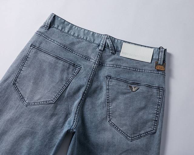 Armani. Spring 2018 New Arrival. A new A-line denim jeans that exude understated luxury and a sophisticated look. The cut and style speak for themselves; the jeans are exquisitely crafted. Made with top-quality Turkish cotton, these are truly luxurious casual pants. The high-quality denim is exceptional, and the heavy washing process makes them incredibly soft. The straight-leg cut is flattering on all body types and creates a stylish and luxurious look. Sizes 29-40 (excluding 37 and 39).
