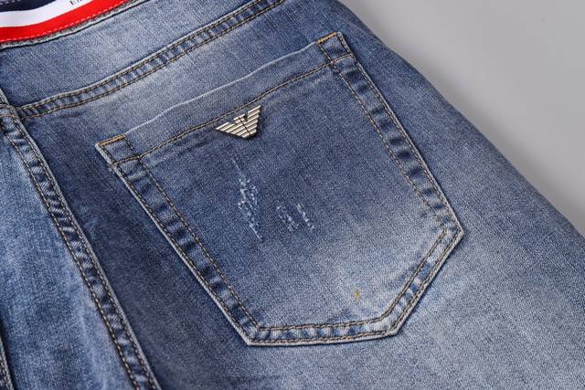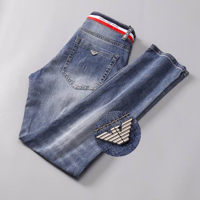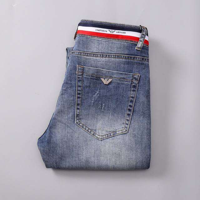 Armani Spring/Summer New Arrivals, the same style worn by top European and American celebrities. Men's distressed jeans with a unique design, made from imported stretch fabric, featuring exquisite workmanship and details. The slim fit is flattering and suitable for all body types! Easy to match with clothes, simple and stylish, enhancing your overall look and temperament! A must-buy! Sizes: 28, 38, size 35 not available! DDD