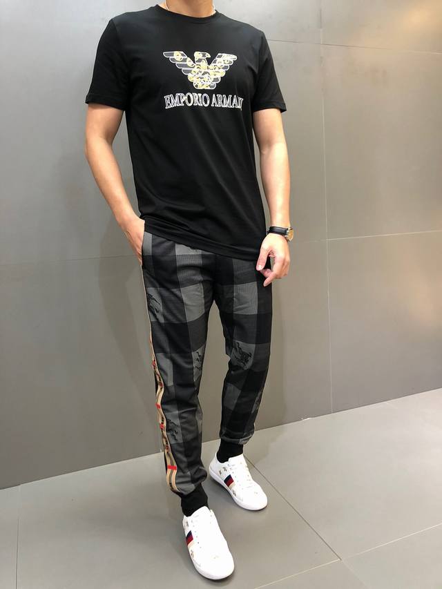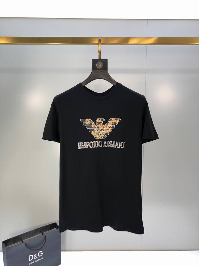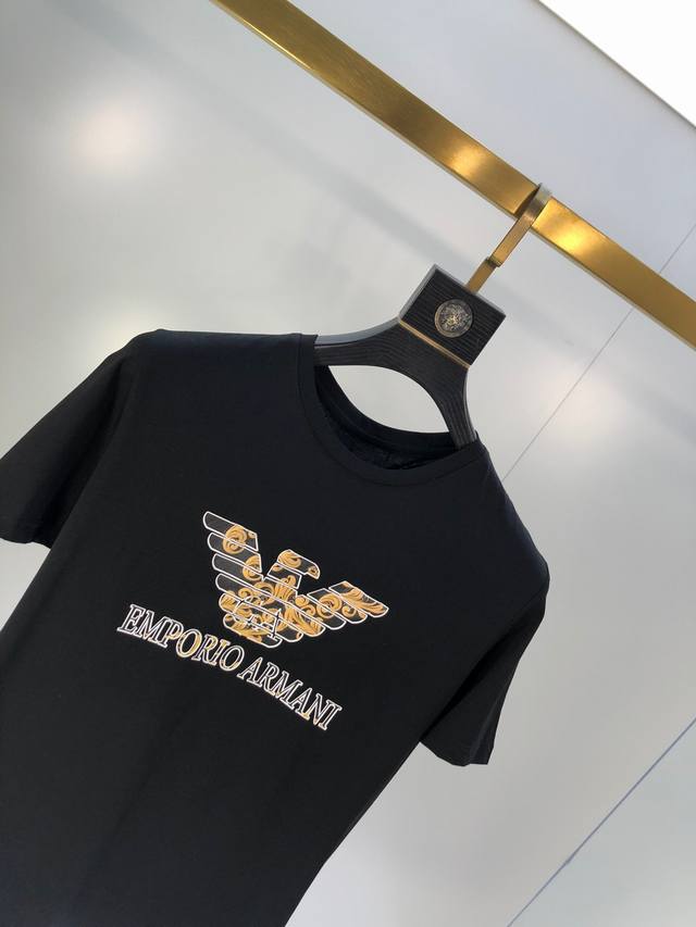 Armani. Suitable for those weighing over 200 pounds. This year's latest hot-selling short-sleeved T-shirt. Same style as boutiques, drip-molded material for the design. The overall design is simple and elegant yet stylish, featuring the classic luxury brand logo. The fabric is imported mercerized cotton. Comfortable and smooth to the touch, breathable and cool to wear, definitely at the forefront of fashion! Sizes: M-XxxxL. M fits 175cm.