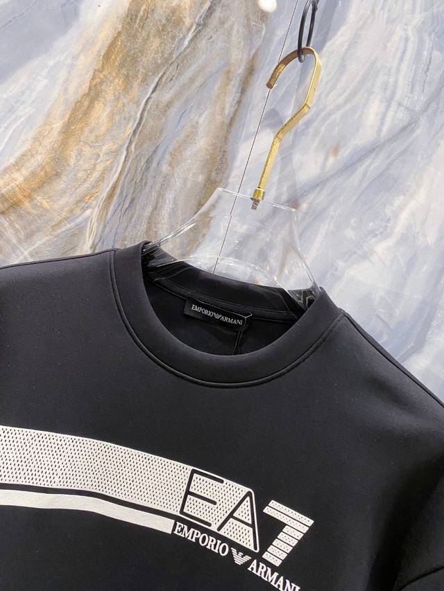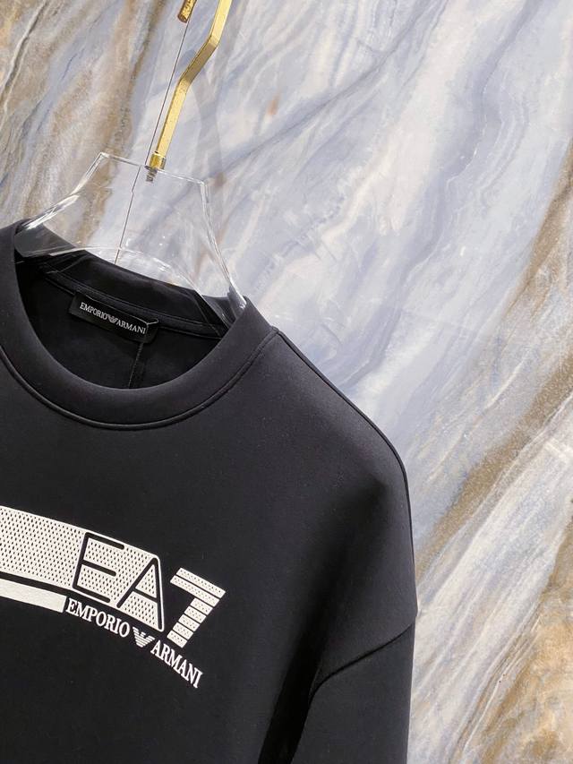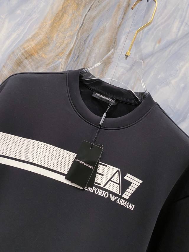 E Armani# 2025 Autumn/Winter Eight-Layer Air Layer Crew Neck Sweatshirt DDD Unisex Fashionable Casual Pullover Sweatshirt! Rarely available from trading company channels, ahead of official website release! Always a unique presence, with extremely high recognizability, always creating fashionable items with a minimalist style, suitable for all ages and genders, easy for anyone to wear! The basic casual crew neck cut has a slimming and flattering effect, suitable for various casual everyday outfits, gender-neutral body type, recommended for both men and women! DDD This sweatshirt is made of imported air layer knitted cotton fabric, which is lightweight, delicate, and soft to the touch, while also maintaining excellent crispness. The inner lining has a tightly arranged terry loop texture like fish scales, providing warmth and breathability without any prickly feeling! The cuffs and hem are stitched with matching dyed knitted ribbed panels, making the wearer even more stylish and handsome! The front of the garment is decorated with a pattern, meticulously printed using top-tier craftsmanship and adorned with brand embellishments, showcasing both luxury and style! Colors: Black, White Sizes: S, M, L, XL