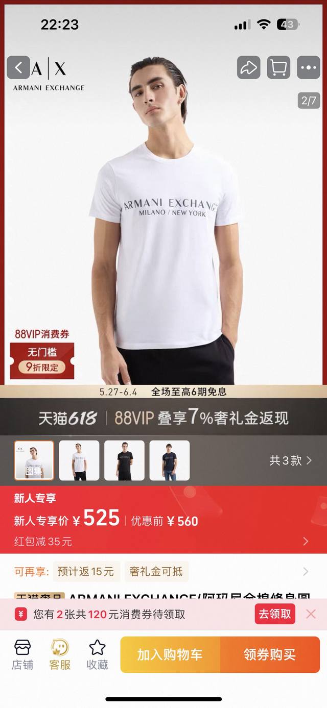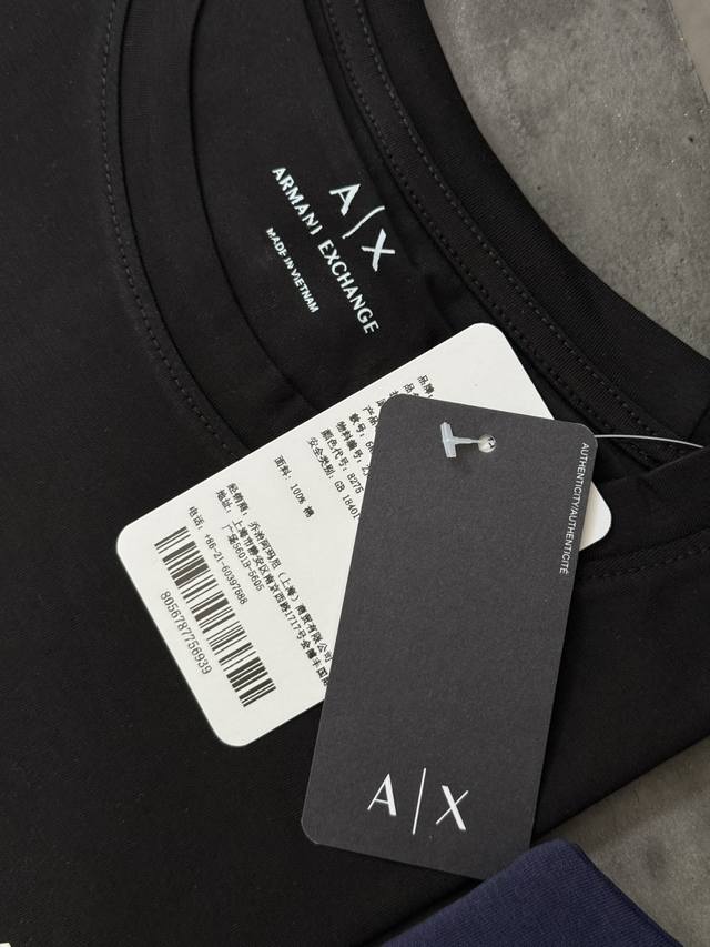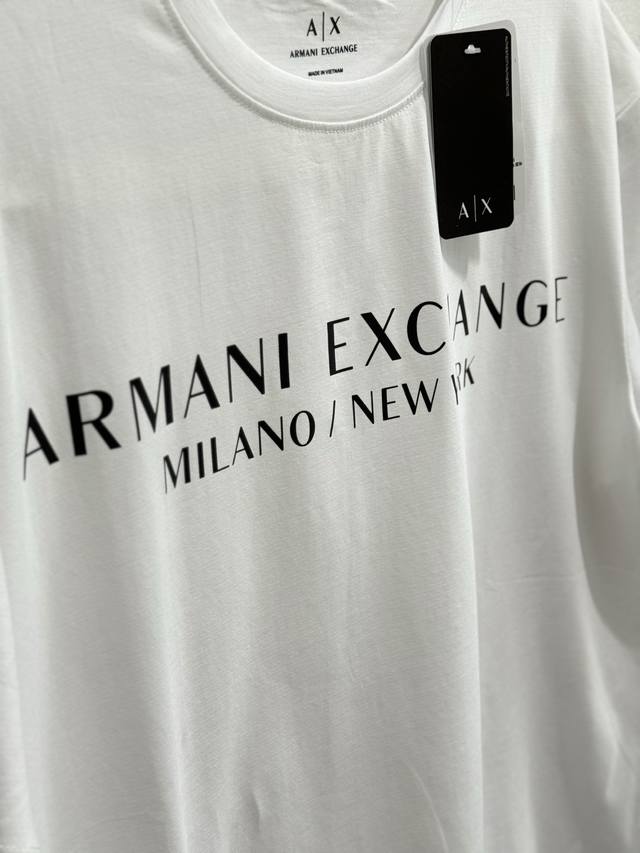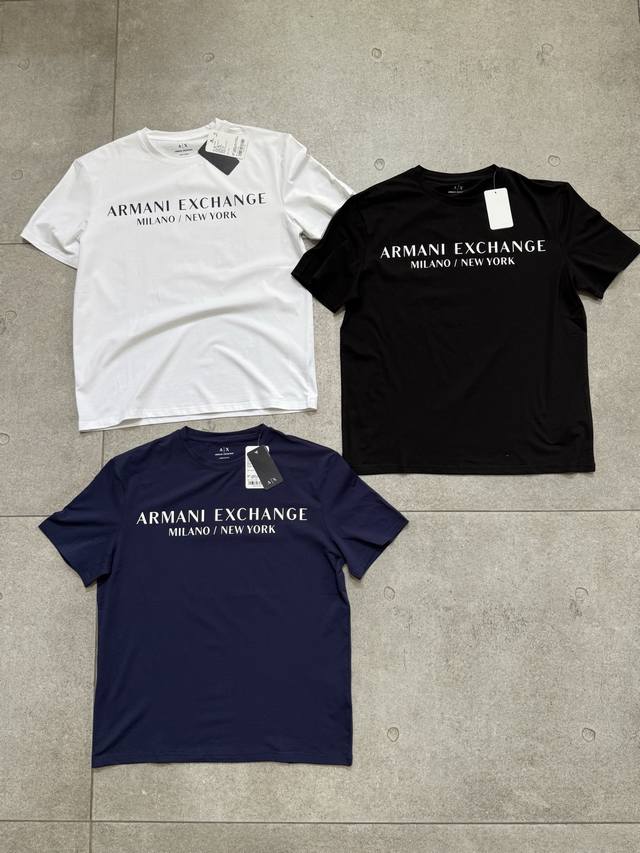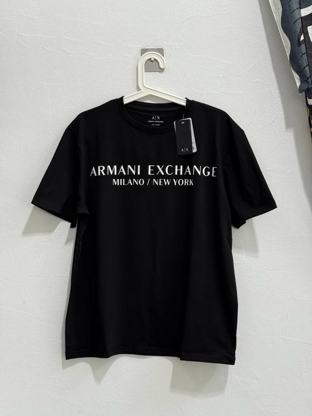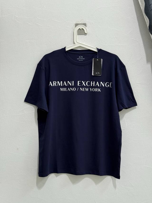 Pure original Armaniexchange Armani cotton slim round neck shoulder couple T-shirt 2025 summer new men's sports casual round neck short-sleeved T-shirt