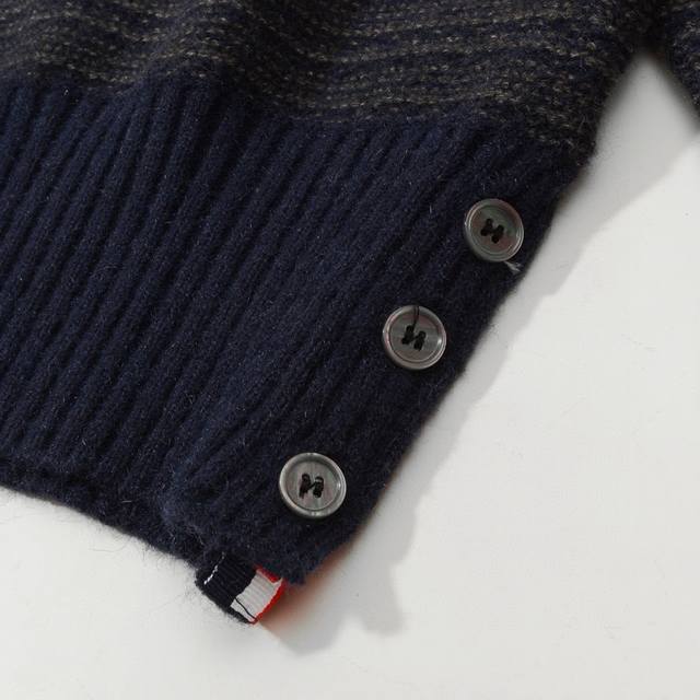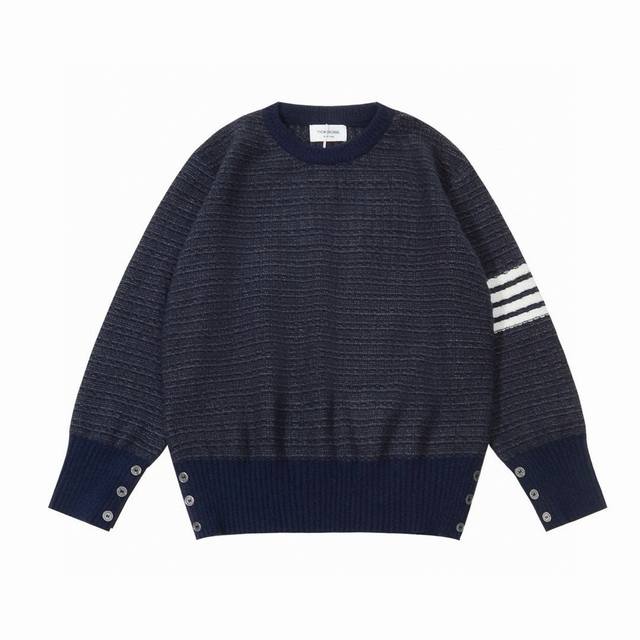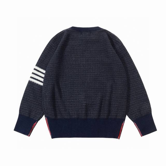 Thom Browne Tb 24Ss Snowflake Chunky Knit Navy Four-Stripe Knit Couple Crew Neck Sweater - Top Original Version