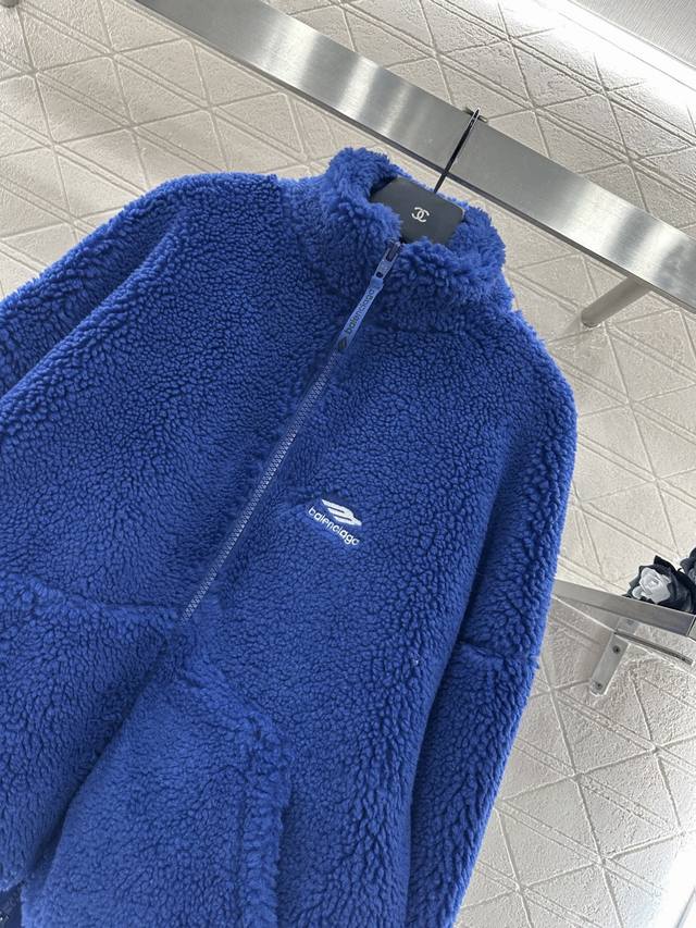 Balenciag2025 New Arrival: Ddd Teddy Plush Coat with Lapel. The entire coat is made of teddy plush material with a textured, short, fluffy feel. It's soft, comfortable, and stylish. The stand-up collar and contrasting letter logo on the chest with a zipper front showcase the brand's style. The elastic ribbed trim provides a structured silhouette and a plush feel, exuding a fashionable flair. An interior zippered pocket adds practicality. A perfect choice for autumn and winter wear, easily layered. Custom fabrics and accessories, please ensure you choose the high-quality version. DDD