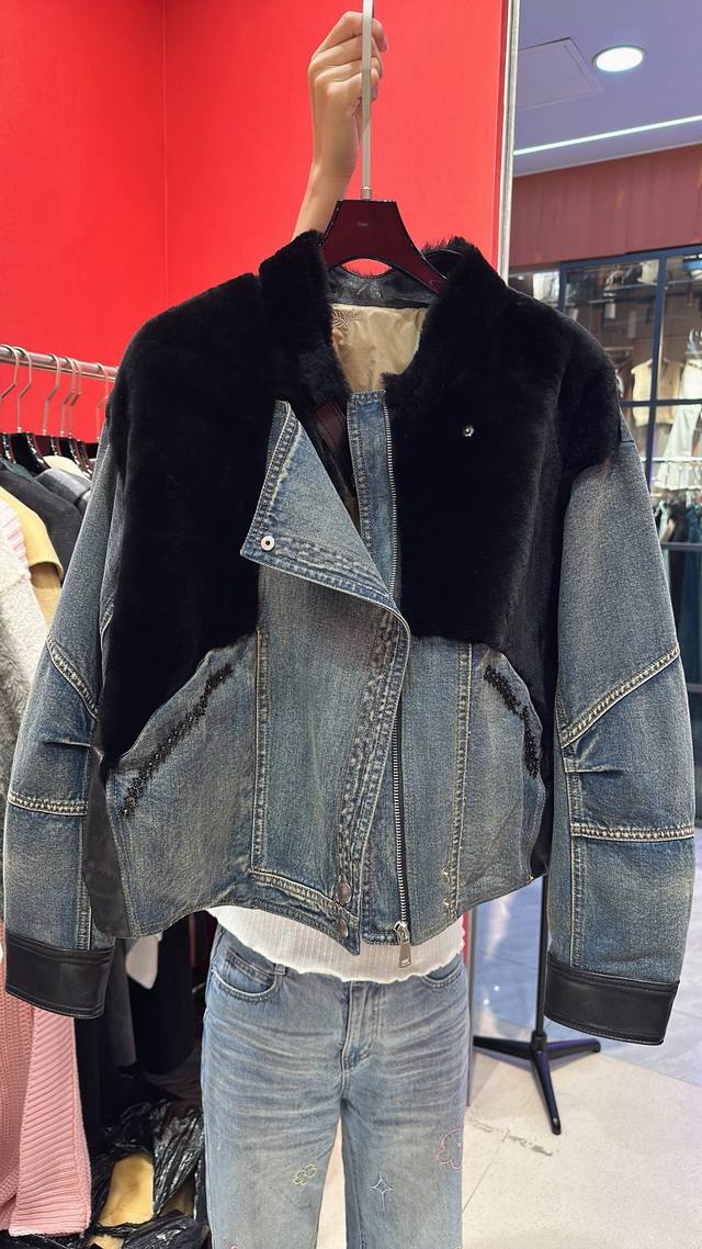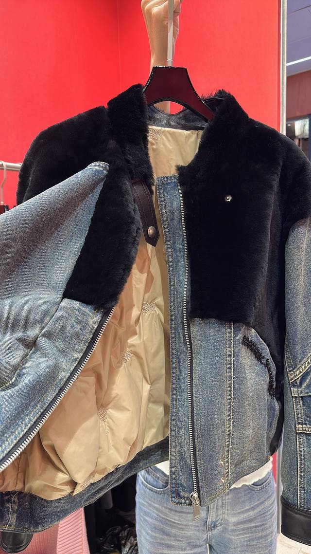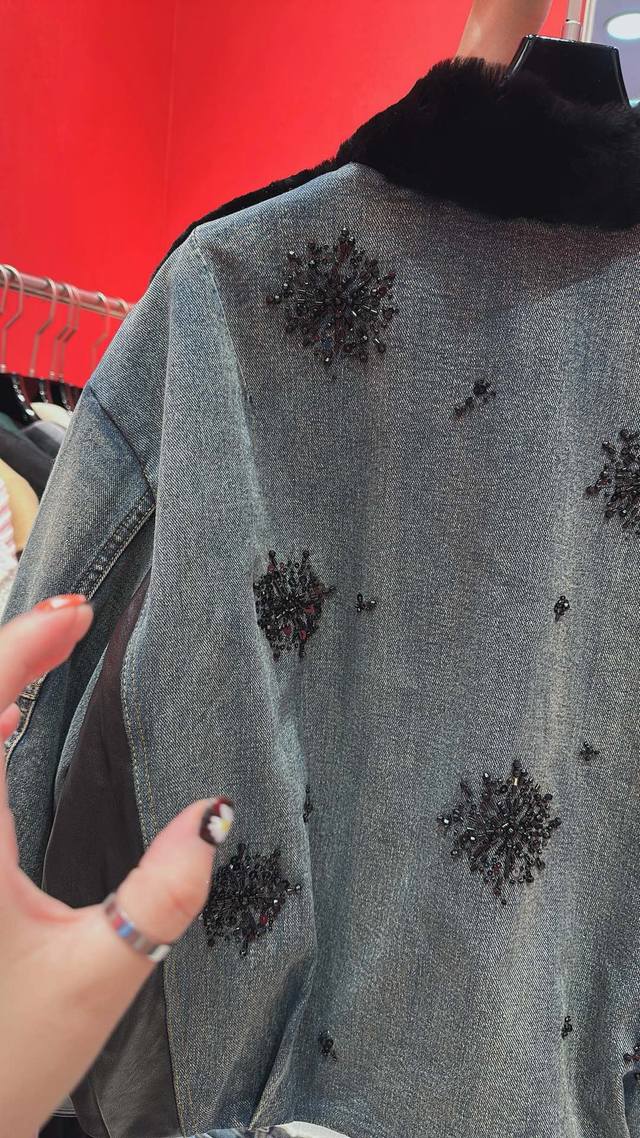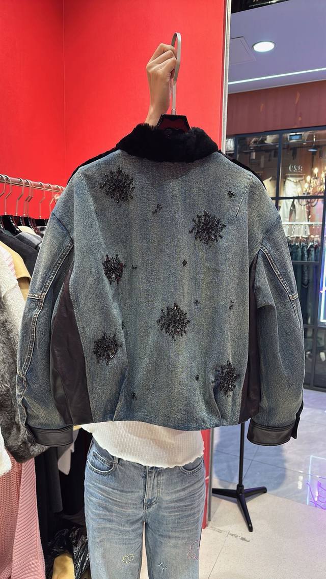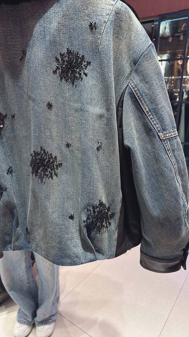 Balenciaga* Heavy-duty beaded leather and down-filled distressed denim with white down lining. Every detail is exquisite. Sizes: S, Mp, Lp, XL, DDD