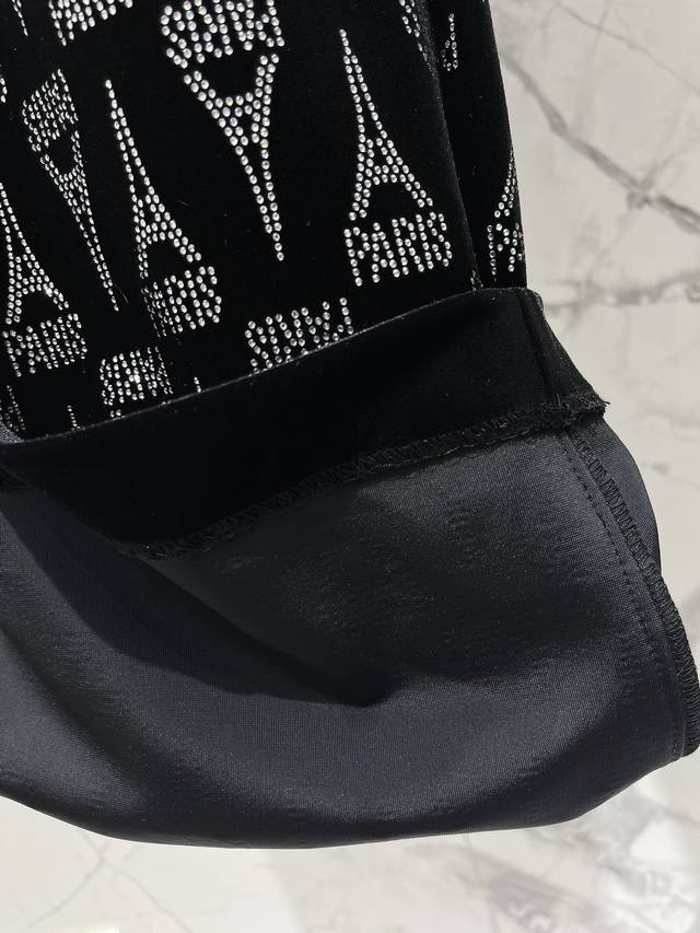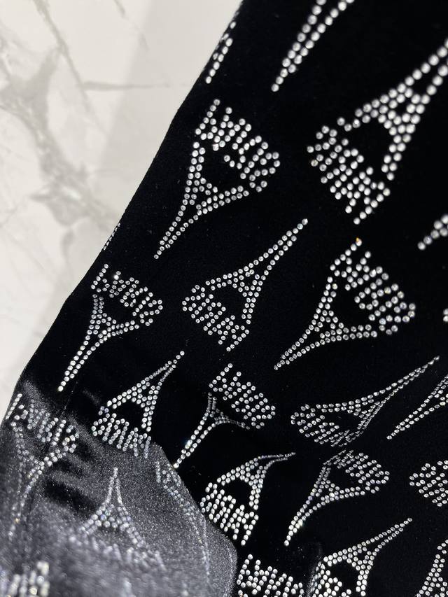 At first glance, the delicate velvet fabric shimmers under the light, like the brightest star in the night sky. The rhinestone Eiffel Tower pattern is the finishing touch, sparkling brilliantly and unforgettable!