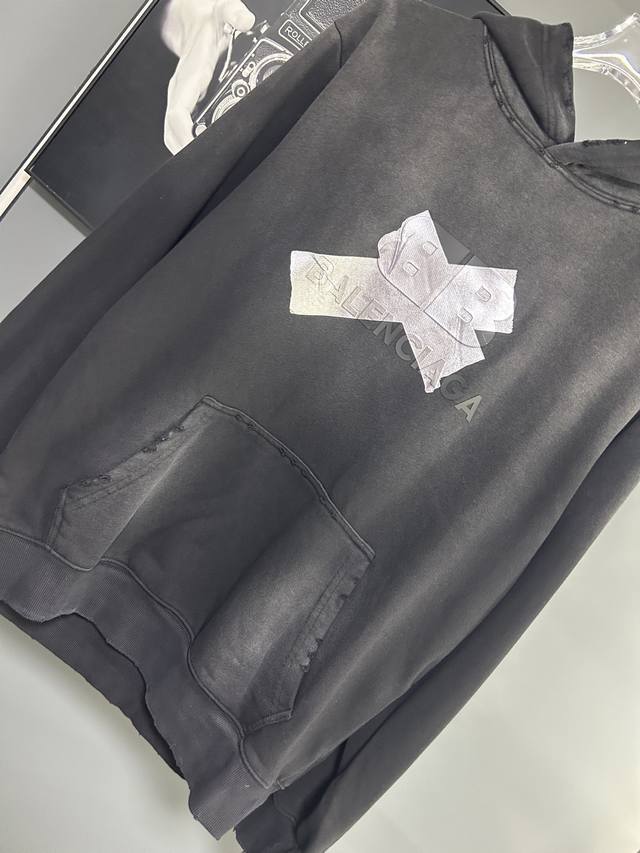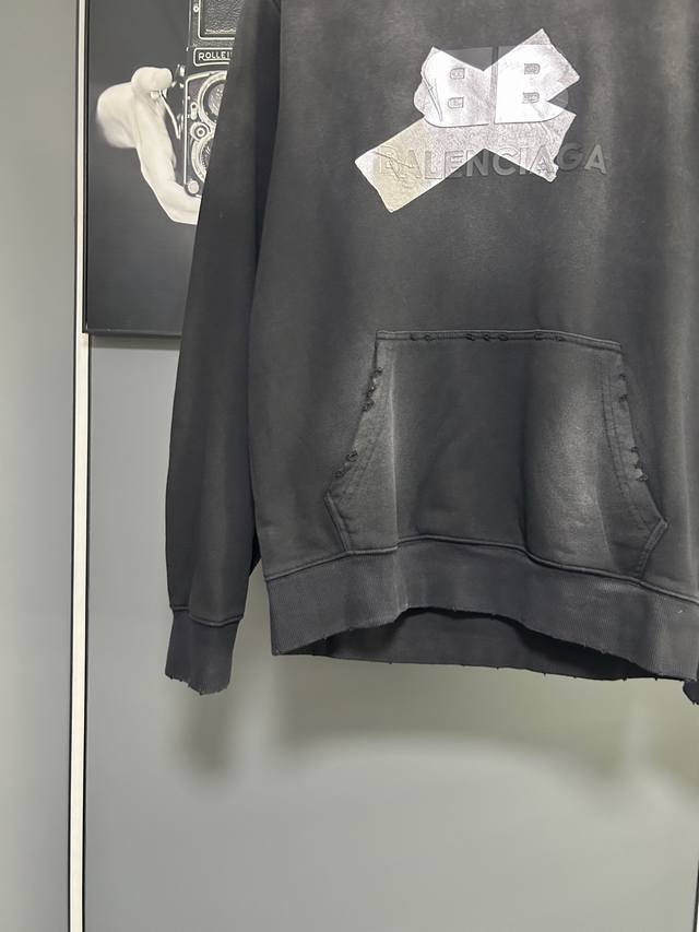 2025 Autumn/Winter Balenciaga washed and distressed silver tape 3D offset logo h
