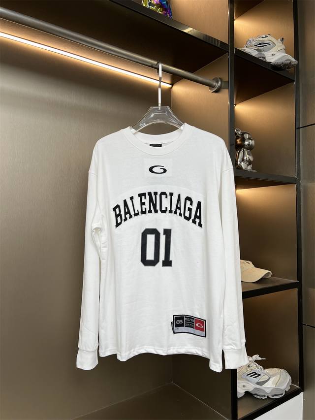 / 8229# Balenciaga Basketball Retro Long-Sleeve Top, 26-count 280g Double Yarn 100