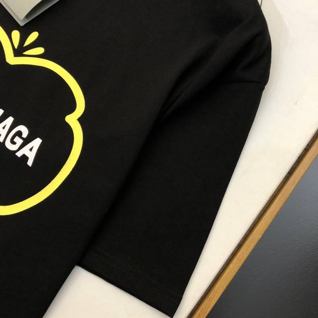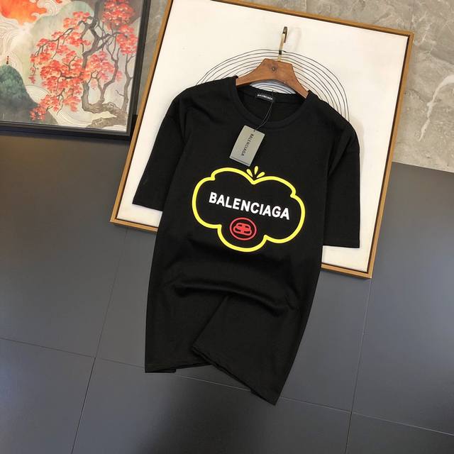 Balenciag* New logo pattern for spring and summer. Oversized cotton T-shirt with logo print in the center front. Standard fit. Similar to the Os cut. The new logo is printed with Japanese glue technology, firmly anchored to the cotton fabric and resists detachment even with hand or machine washing. For a more fitted look. Sizes S-2Xl