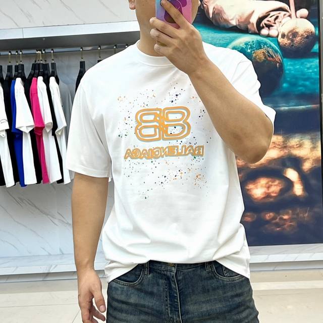 Balenciaga, 2025 new men's short-sleeved T-shirt, made from custom-made imported fabric. The fabric has a smooth, delicate texture and rich texture. It is comfortable to wear and has excellent breathability and moisture absorption. It is comfortable next to the skin without feeling stuffy, giving you an ultimate wearing experience! The details are extremely perfect and impeccable. The effect on the body is very outstanding. It is very eye-catching and will undoubtedly turn heads. It is a perfect piece to improve your visual sense in the wardrobe. Whether worn as a layer or alone, you will look super handsome! S-2Xl Model 173-140 catties upper body size M