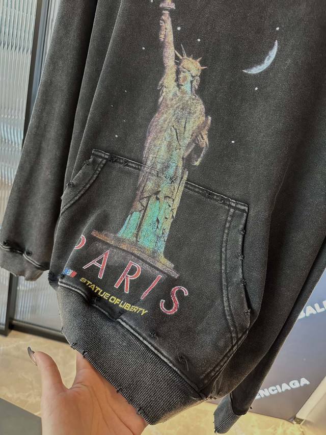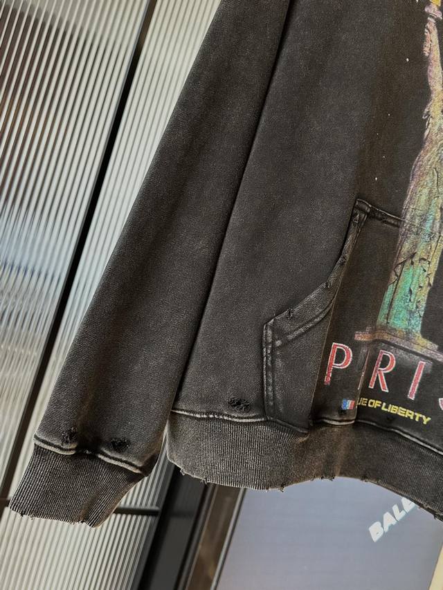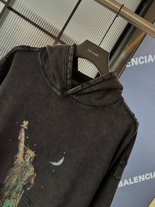 Balenciaga Liberty Hoodie features a 440g weight. The fabric utilizes an import
