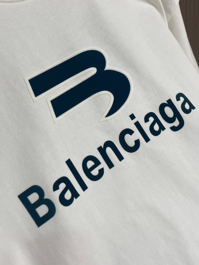Balenciaga logo-printed round-neck short-sleeved T-shirt, custom-woven and custom-dyed, 100% cotton double-ply fabric, garment-washed. High-definition scanned front panel, perfectly reproduced pattern, laser-positioned, machine-printed neckline. Ribbed fabric, custom-woven and custom-dyed, with straight, smooth seams. Comfortable, soft fabric, consistent color, no color variation. Custom trims available. Sizes: M-Xxl