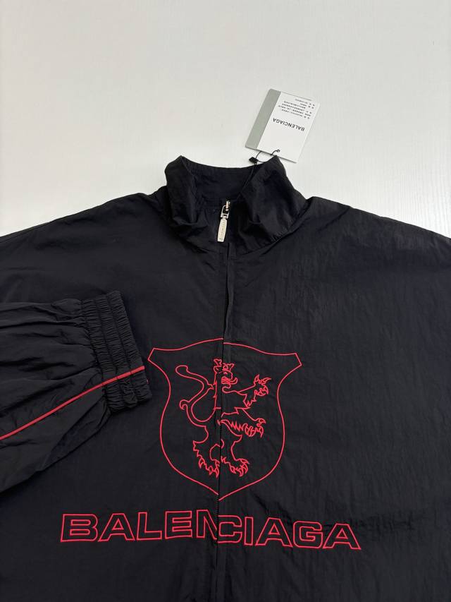 Balenciaga* Paris 25 New Lion Ub Manchester United Sports Windbreaker Jacket DDD Features imported Tajima embroidery machine with 10,000-needle stitch, imported Coats thread for clear and precise lettering, and custom nylon fabric for a premium feel. Includes letter print on the chest, 3B logo embroidery on the chest and cuffs, Manchester United badge embroidery, high-density embroidery on imported German embroidery machine, and custom hardware accessories. Fabric is made of 210T 145Gsm matte micro-pleated nylon four-way stretch Taslon. DDD Size: Xs SML DDD