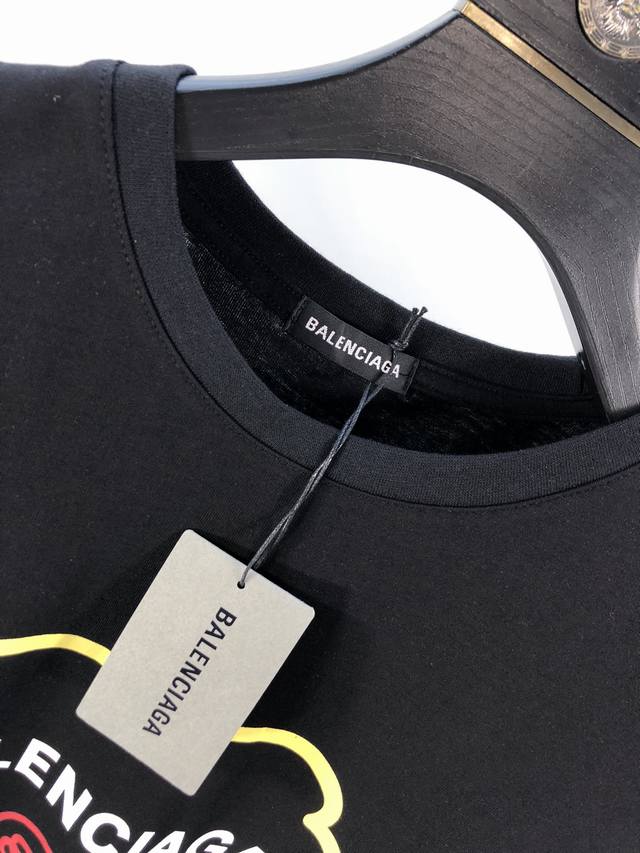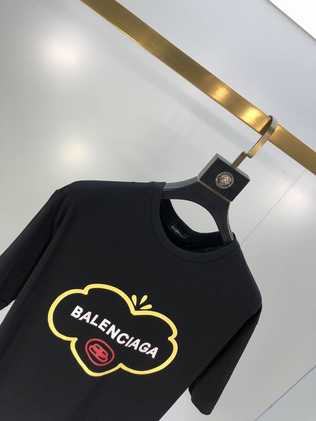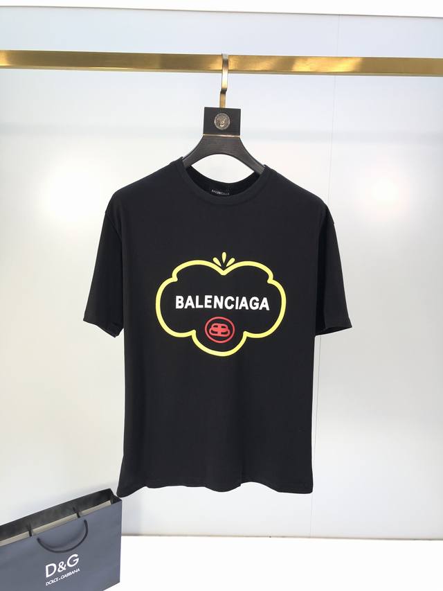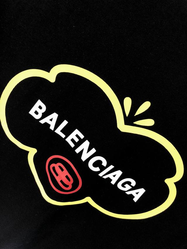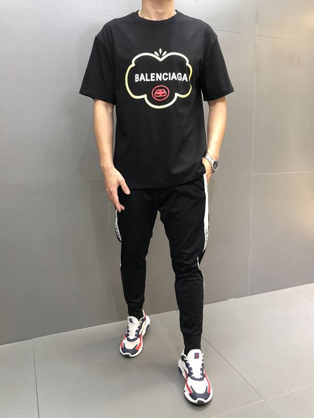 Balenciaga. SS Spring/Summer Loose Fit Collection. Available at the official website and counters. Casual crewneck T-shirt. 100% cotton. Comfortable and breathable. Brand logo and charter. Ribbed neckline. Sizes S-XXL. S wears 115cm and weighs 130kg.