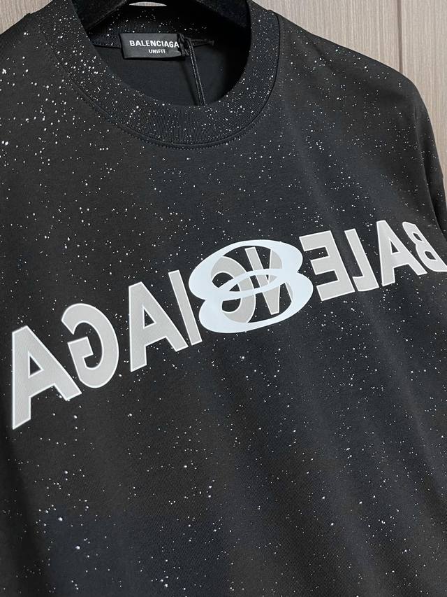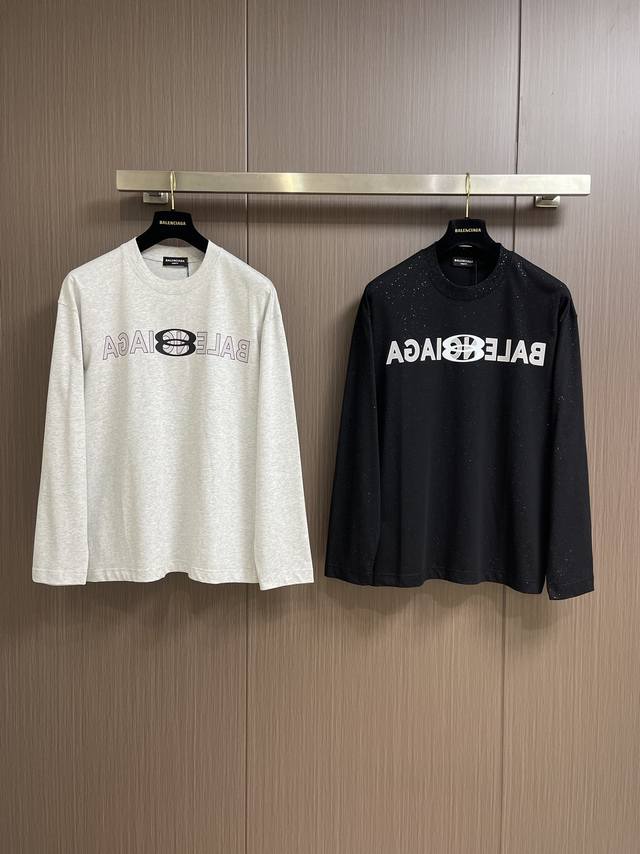 Balenciaga's new logo-printed round-neck long-sleeved T-shirt. Made from custom-woven, custom-dyed, double-spun cotton. The weight is 100g, resulting in a clean, crisp, soft, and comfortable surface. The threads are custom-dyed for a seamless color shift. The classic logo is printed with environmentally friendly imported materials using a direct-ink printing process for a three-dimensional effect. The silhouette features an OD-style, loose, dropped-shoulder fit. Sizes: S, M, L, D, D