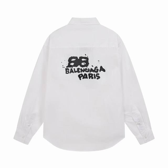 C02# Balenciaga single-breasted casual long-sleeved shirt with printed logo. The regular fit is simple and pure, yet elegant. Made from high-quality fabrics, it ensures comfort and durability. The soft texture and precise workmanship create a clean, effortless look. Colors: Black, White. Sizes: S, M, L, XL,