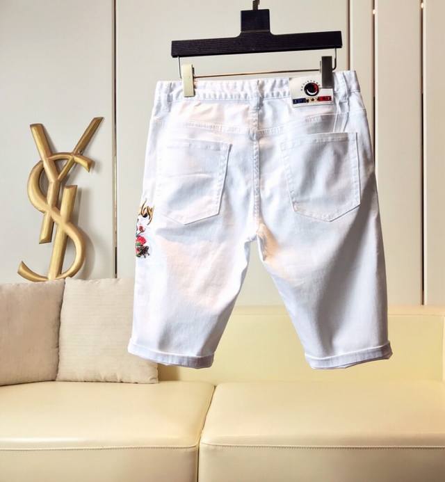 Denim shorts. Balenciaga top-grade imported original jeans, crafted with original hardware and accessories. Custom-made denim fabrics, exact match to the original. Please try them on before buying. Good quality is worth comparing. Sizes: 28-36