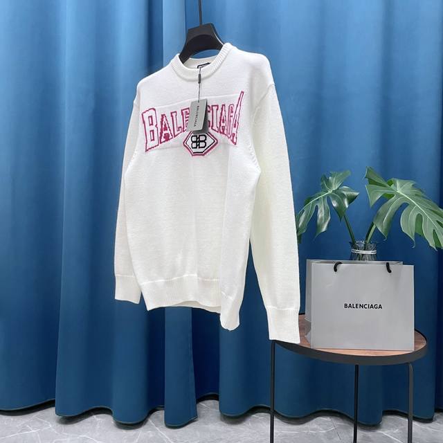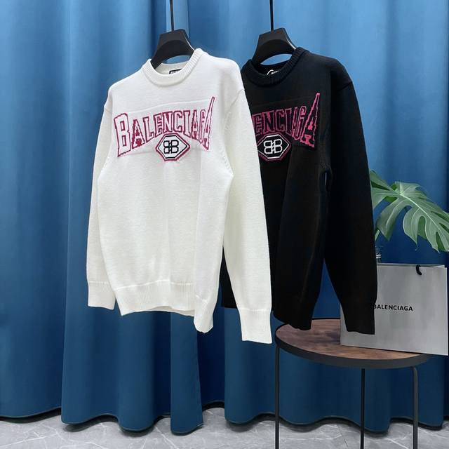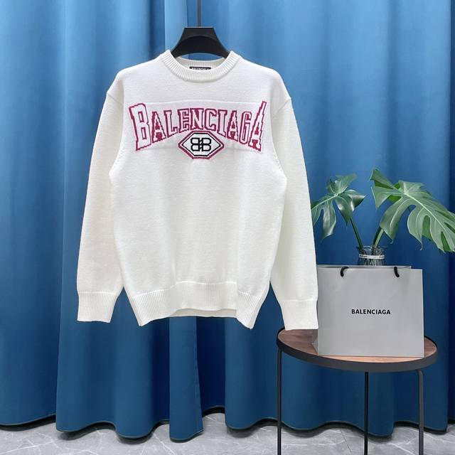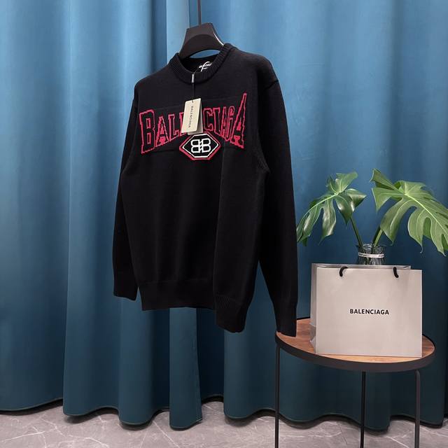 Balenciaga's new jacquard double-B wool sweater, Os-style, unisex.