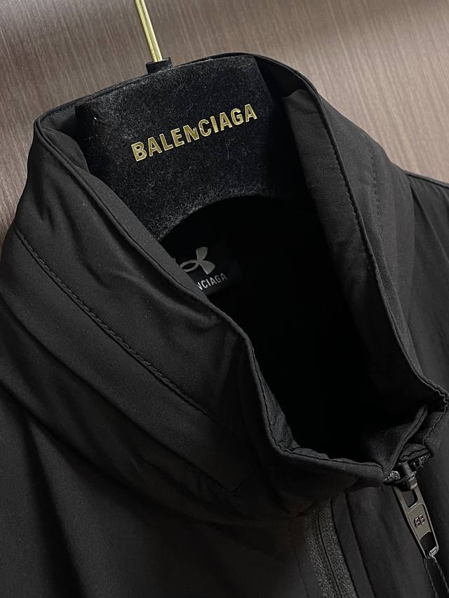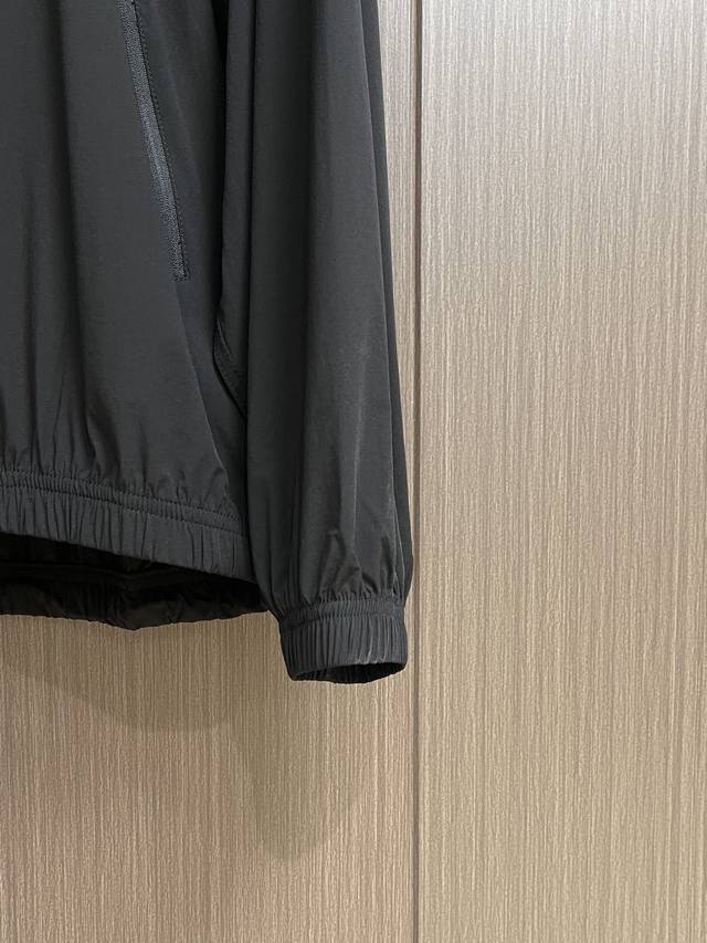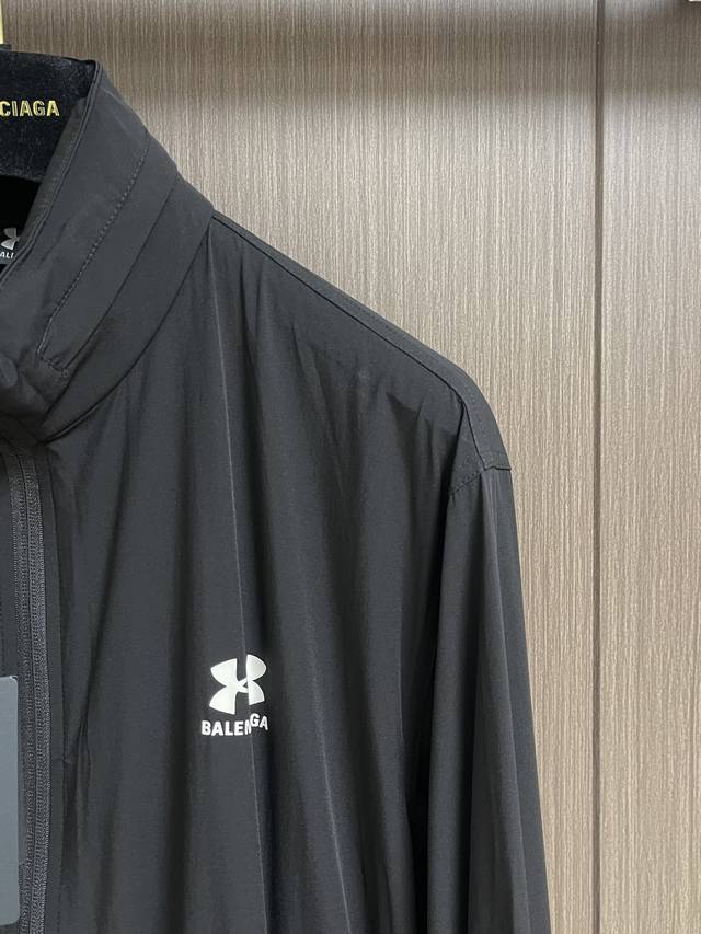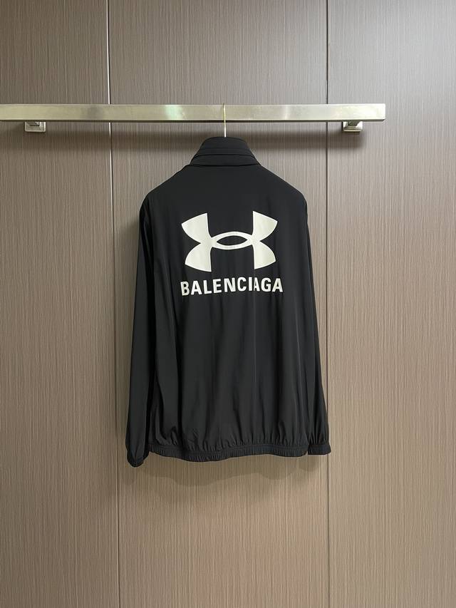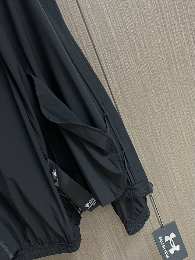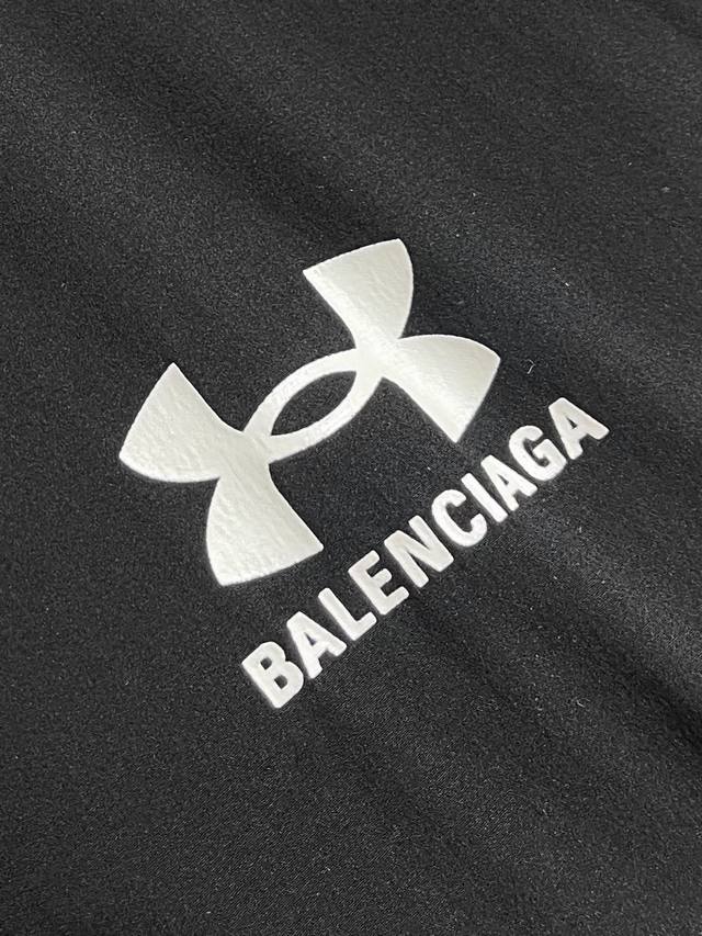 This Balenciaga collaboration with Under Armour stretch nylon jacket is made from stretch nylon. The addition of elastane gives it excellent stretch and resilience, allowing it to adapt to physical activity and provide a comfortable fit. Nylon is naturally water-resistant, easy to wash and dry, and wrinkle-resistant. The front of the jacket features a rubberized print featuring the logo and lettering, offering excellent wear resistance and washability. The back also features an enlarged version of the dual-brand logo and lettering, highlighting its stylish and recognizable design. The print is a work of art, evoking a stylish and recognizable brand identity. A hidden pocket under the back collar zips open and closes. Due to the lightweight fabric, the hood can be hidden or opened depending on your needs. A round cowhide hood cord with a resin cord stop at the neckline allows for easy adjustment. Flat cowhide cuffs and hem offer excellent elasticity, adding a more defined silhouette. The hem features a round cowhide elastic band and a hidden cord stop for both aesthetics and practicality. Available in sizes 46-52