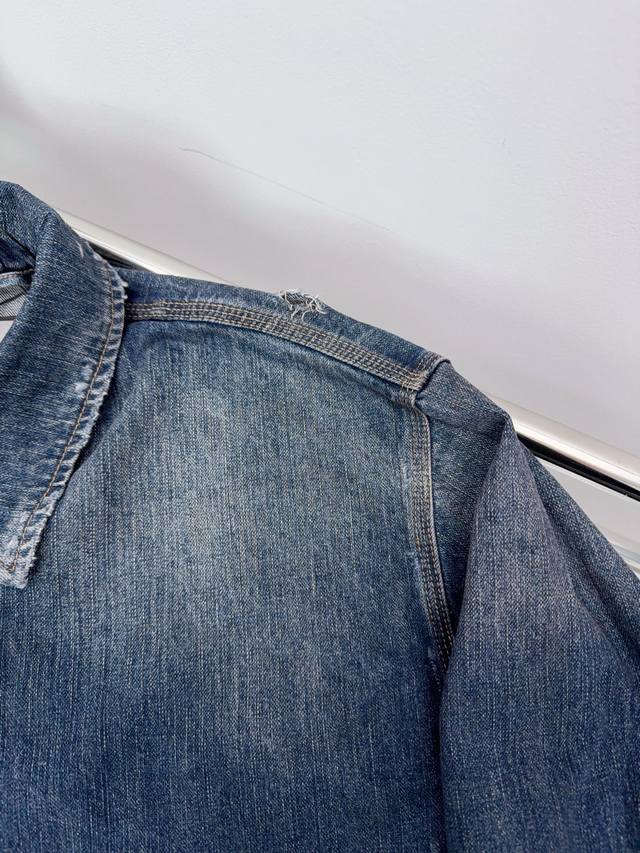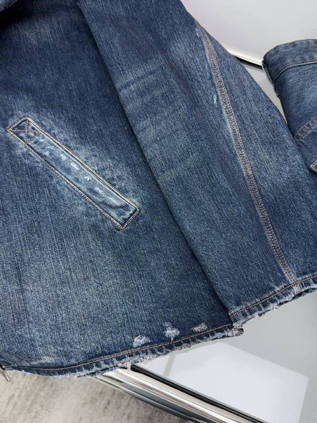 Made of high-density cotton twill denim imported from Italy, the twill structure increases the wear resistance and crispness of the fabric. The washing process is repeated 3 times to restore the color. The washing and sand and stone polishing form a natural old texture with a delicate and natural color transition; the pocket cloth is custom-woven and custom-dyed, and the thickness and material of the entire piece are consistent with the original Yb, without missing any subtle details; the positioning damage at the cuts, and every hole and worn effect are carefully crafted, showing an uninhibited sense of fashion without destroying the overall structure and practicality of the clothing, perfectly combining fashion and craftsmanship.