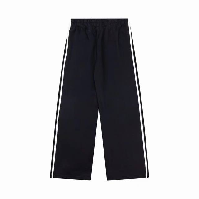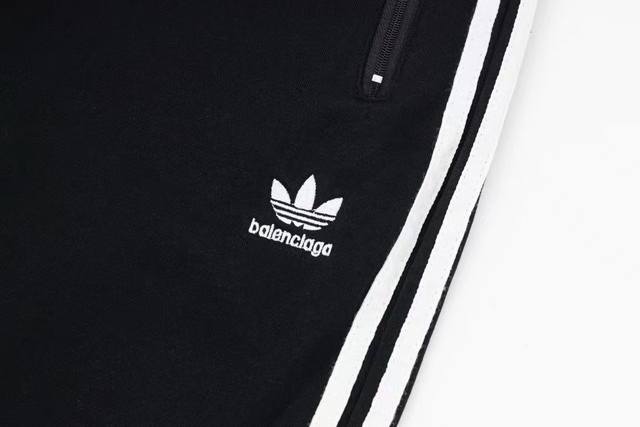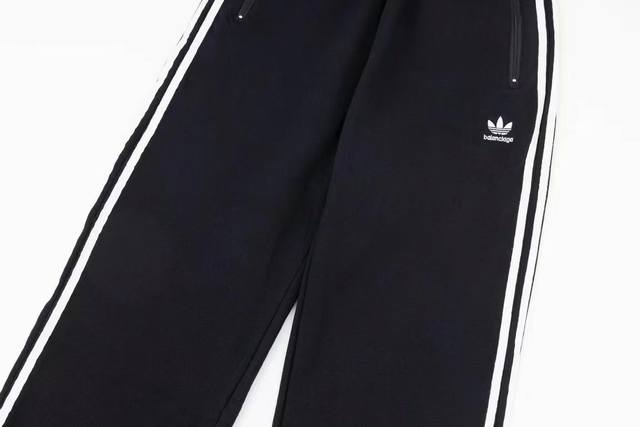 Balenciaga X Adidas Ss24 contrasting logo print and striped trims. Elastic waist, knitted with 3D embroidered lettering, straight-leg sweatpants with a loose fit. Unisex style.