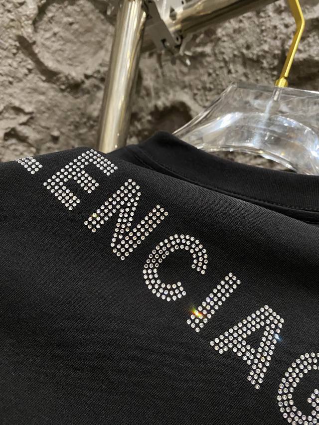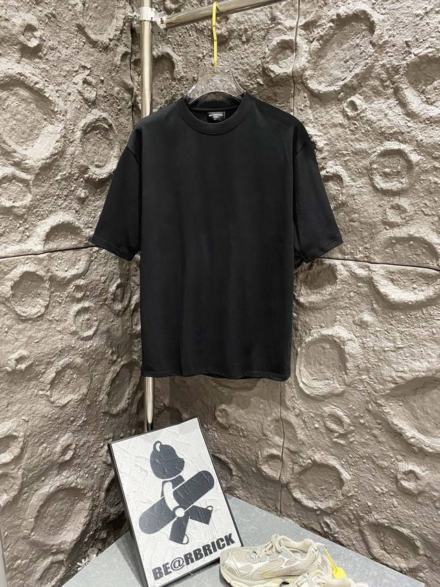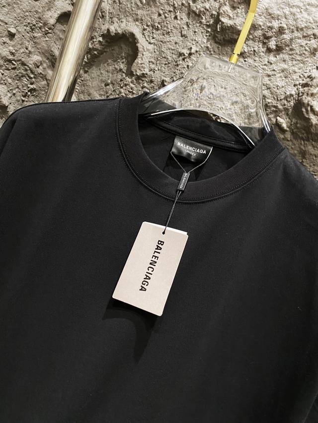. This is a top-tier, loose-fitting, high-end, trendy short-sleeved T-shirt featuring a Balenciaga logo on the back. This is a trendy, high-end, and Parisian-inspired short-sleeved T-shirt for couples.