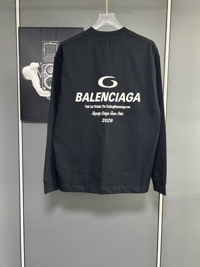 2026 New Exclusive Balenciaca Autumn/Winter Limited Edition Heavyweight Long-Sleeve T-Shirt, Custom-Made Dreamy Ribbed Cotton Designer Concept Design. Fabric: 350g Heavyweight. Sizes: S, M, L, XL. Colors: Black, White.