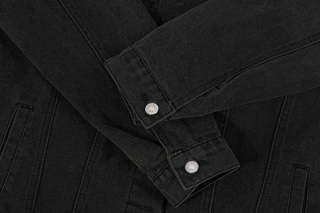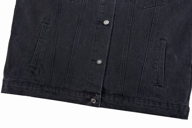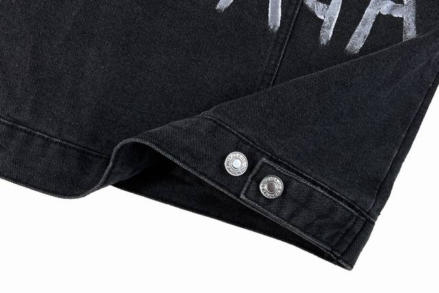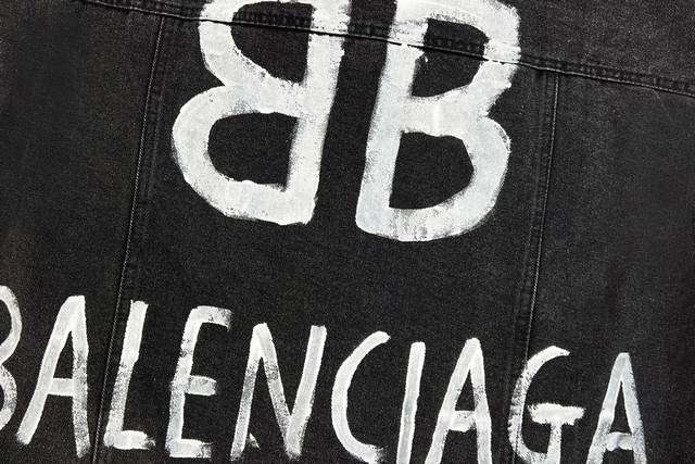 A high-end Balenciaga double-B graffiti print denim jacket, the same style worn by Justin Bieber. The double-B graffiti on the back is loose, comfortable, and a perfect slimming effect! Made from custom-made pure cotton denim with a special heavy-duty wash process, the graffiti on the back is spray-painted with imported slurry, and features custom-made hardware buttons with the original logo. The details are meticulously crafted to match the original.