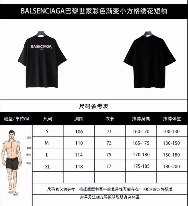 Balsenciaga colorful gradient small square embroidery short sleeves
