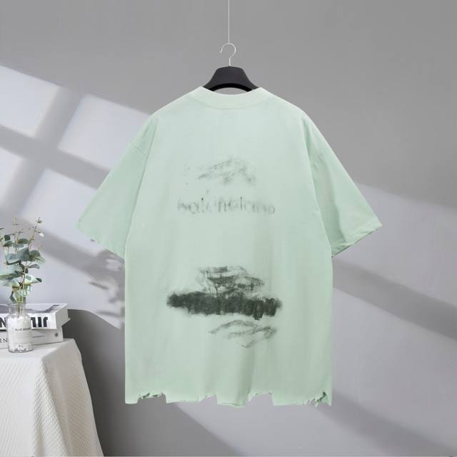 Balenciaga 2025Ss front and back blurred 3M letter print distressed short-sleeved T-shirt
