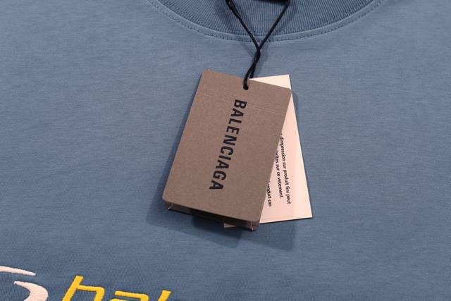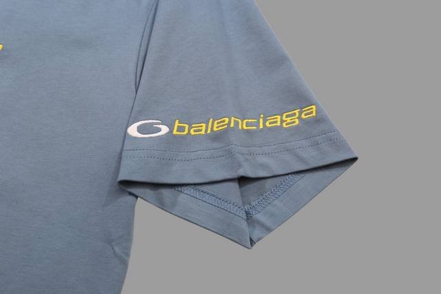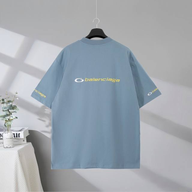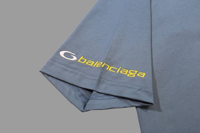 Balenciaga 2025Ss short-sleeved T-shirt with circular letter cuffs and micro-logo embroidery