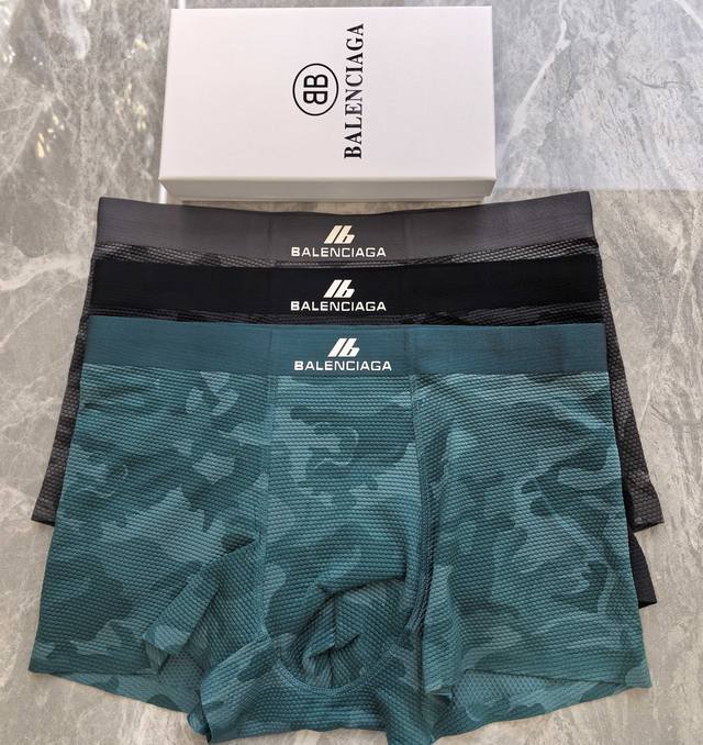 Balenciaga 1 box of 3~Original quality! Must-have men's boxer briefs! High-grade ice silk material, scientifically blended with 83% nylon and 17% spandex using seamless cutting technology, silky smooth, breathable and comfortable! Underwear should not be compromised; it must be soft and breathable. The waistband features a logo decoration with a printed plastisol printing process! The smooth, close-fitting texture feels even more delicate. High-end custom dyeing and color fixing ensure outstanding quality. Sizes: L, XL, 120-200 lbs. Note: Underwear is non-refundable and non-exchangeable.
