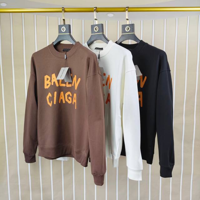 Balenciaga 2025 Autumn/Winter New Original Men's Casual Sweatshirt High-end Custom High Version Fashionable and Versatile Hot Selling Style Os Loose Drop Shoulder Oversized Fit Printed Logo Pattern Design Original Imported 420g Double Stretch Pure Cotton Fabric Ribbed Cuffs, Neckline, and Hem Super Soft and Delicate Feel, Skin-friendly and Comfortable to Wear High-end Boutique Factory P Fine Workmanship Very Good Fit Men's Must-have Item All Three Labels Complete Size: M-3XL Largest size can fit around 220 jin (approximately 110 catties) Please provide your height and weight when ordering