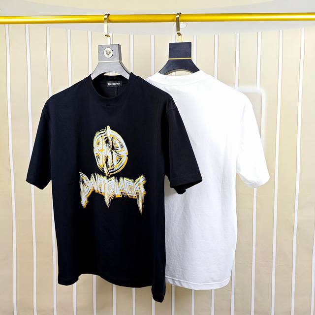 Balenciaga 2025 Spring/Summer New Arrival Men's Crew Neck Short Sleeve T-Shirt, Original Quality, High-Version, Os Fit, Wide Fit, Bestseller, Custom Made with Imported Double Stretch 100% Pure Cotton Fabric, Logo Print on Chest, Soft and Delicate to the Touch, Comfortable Against the Skin, Factory Direct, Exquisite Workmanship, Very Stylish and Handsome, A Must-Have Item for Men, All Tags Complete, Sizes: S-3XL (Runs Large, Largest Size Fits Approximately 220 lbs), Please Provide Height and Weight When Ordering, Black, White,