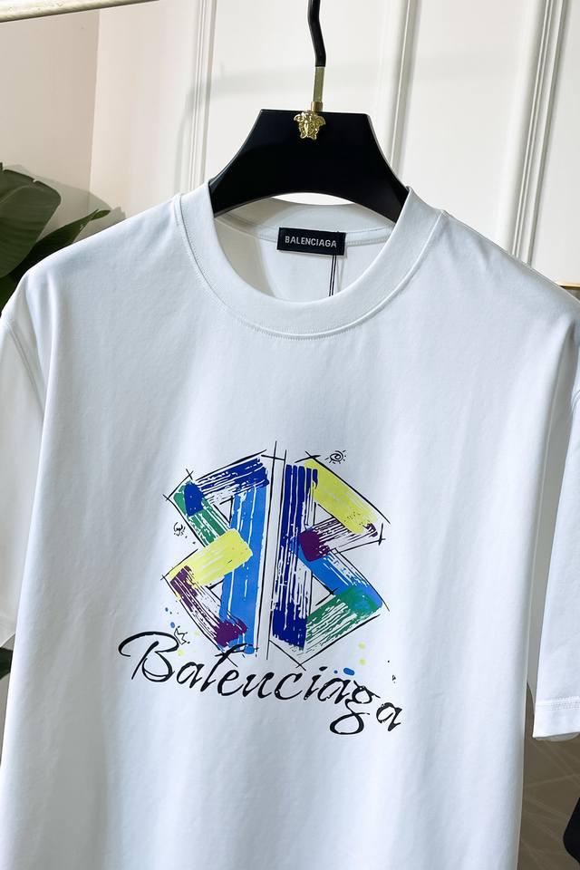 Balenciaga - 2025 Spring/Summer New Unisex Short-Sleeve T-Shirt, Available Now in Stores! Made with custom-designed pure cotton fabric, featuring a printed logo on the chest! Simple and elegant, versatile and high-end, perfectly blending fashion and style