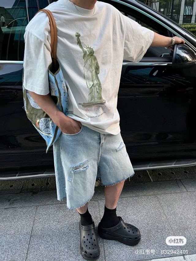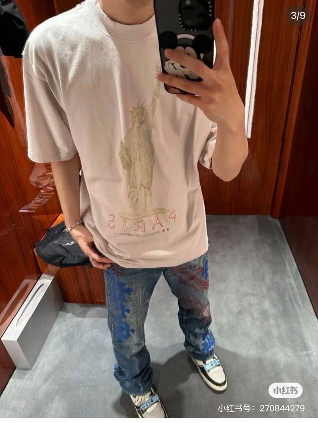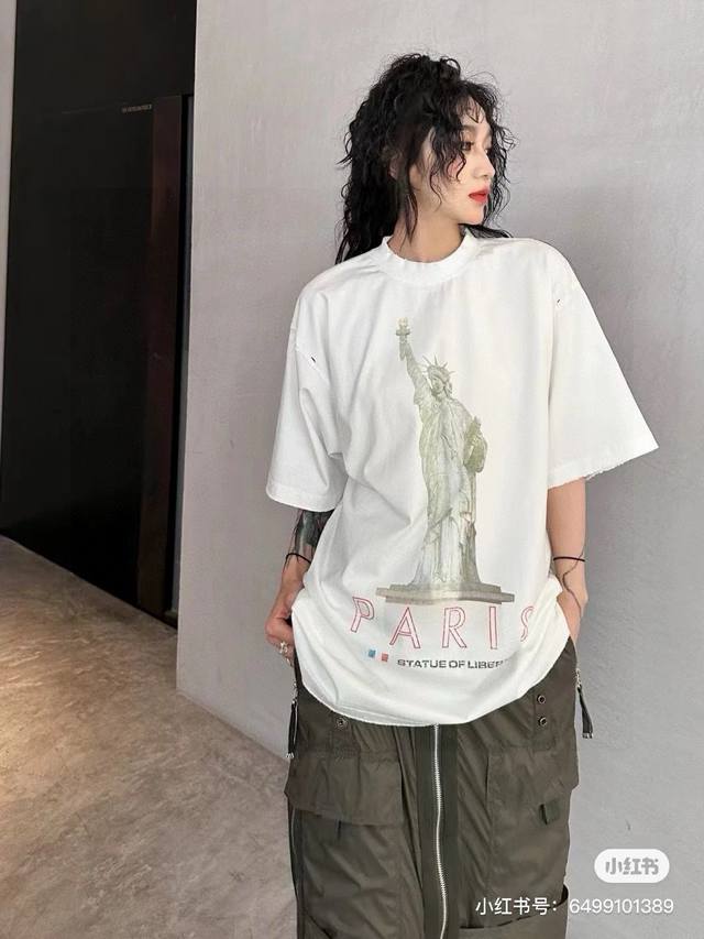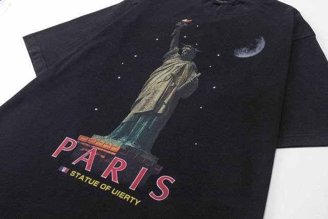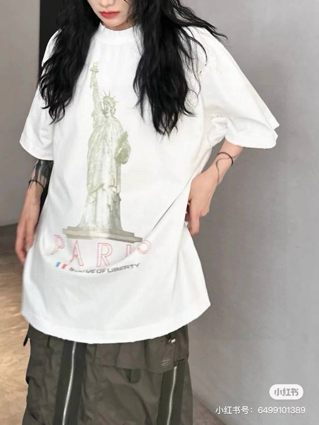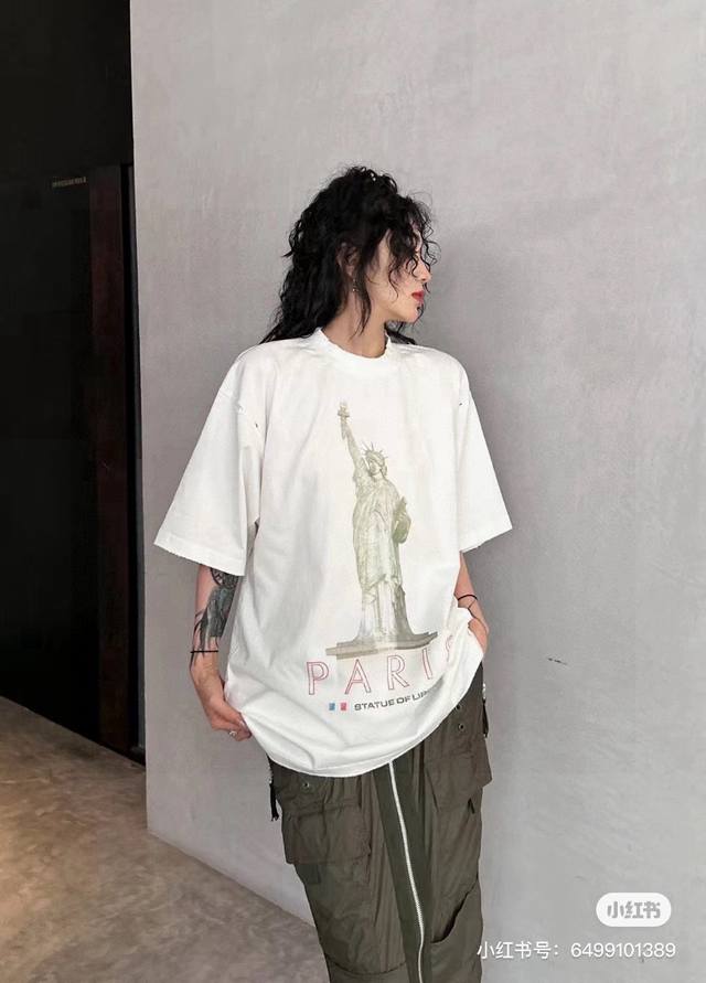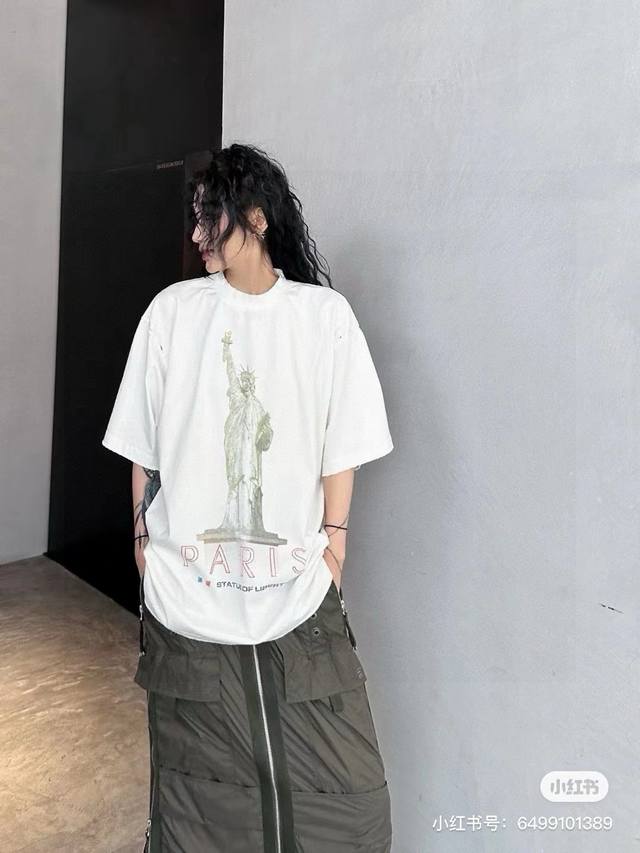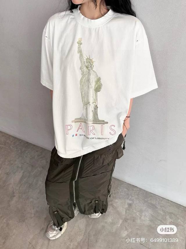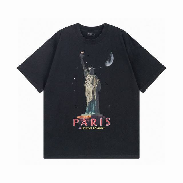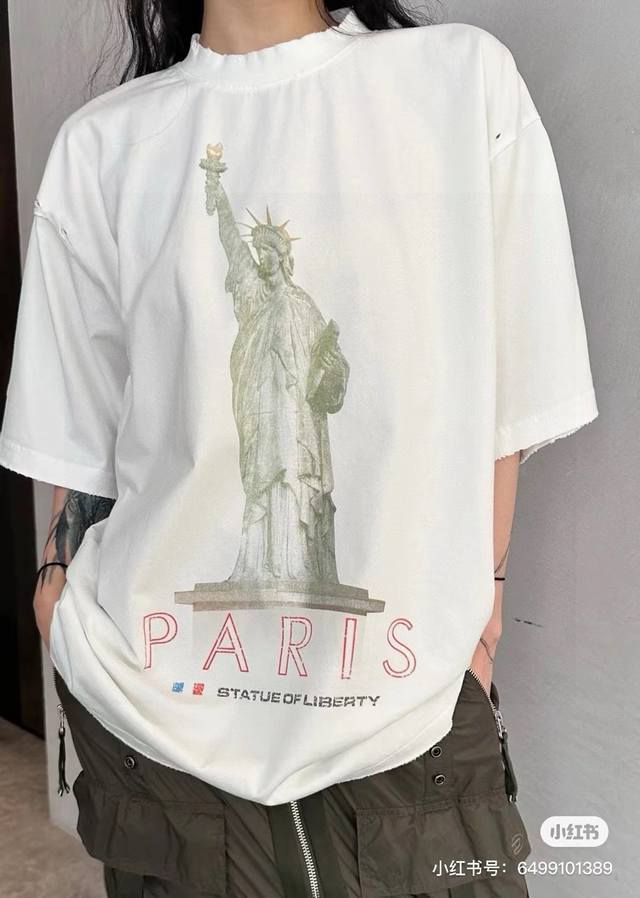 Balenciaga 2025 Ss catwalk style Statue of Liberty washed distressed short-sleeved T-shirt