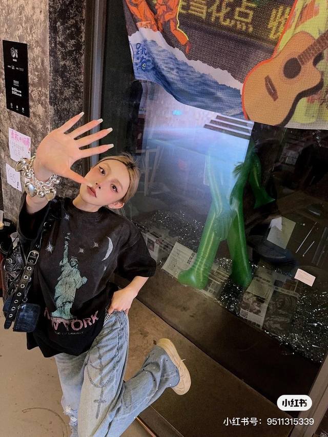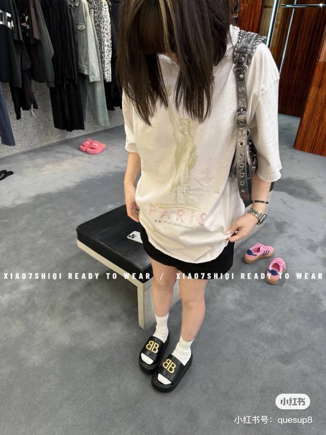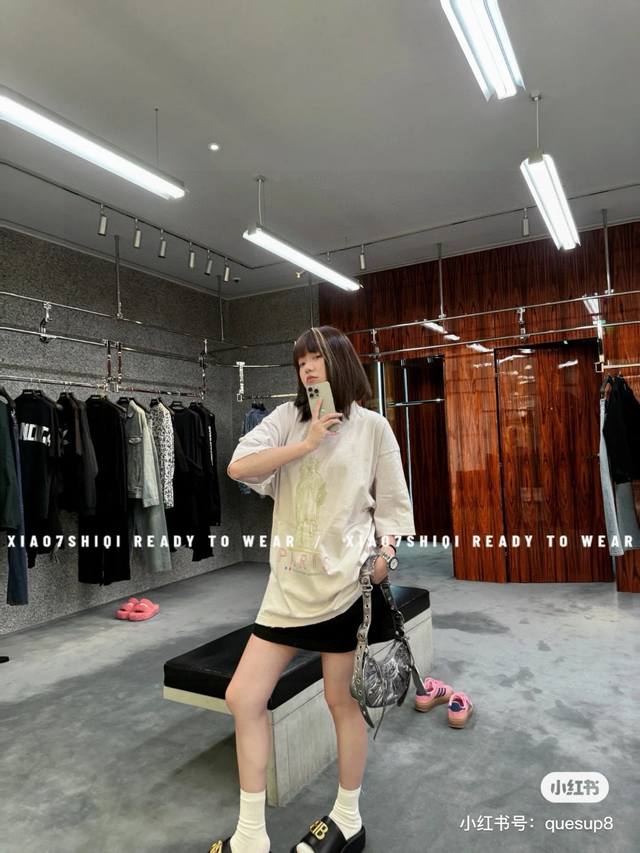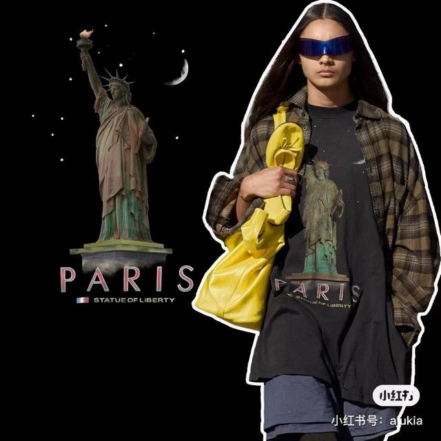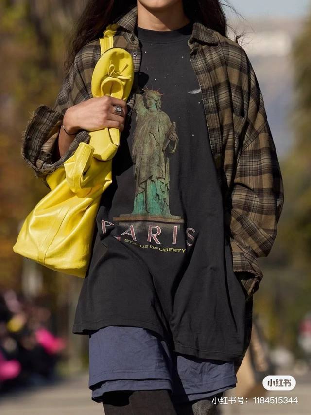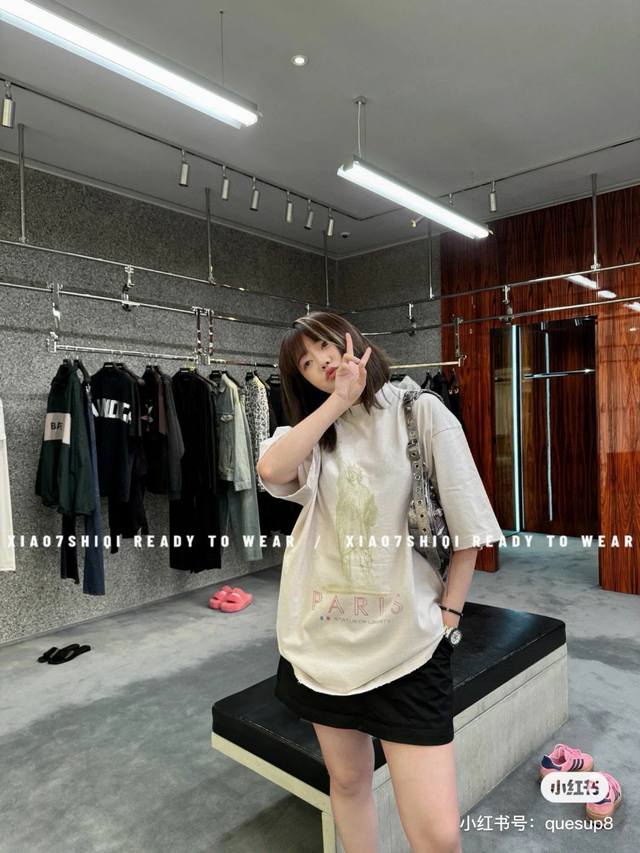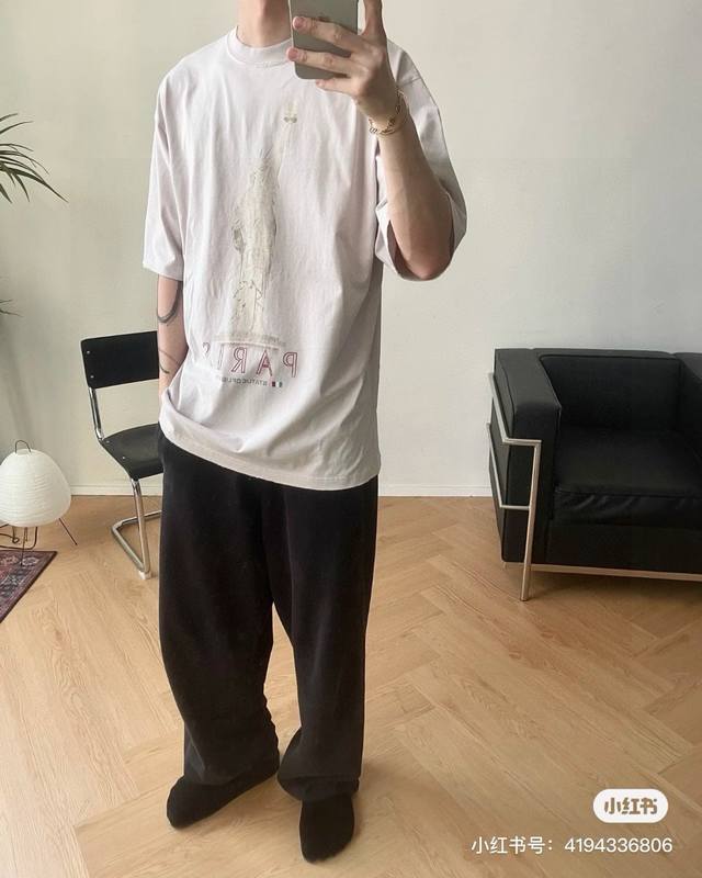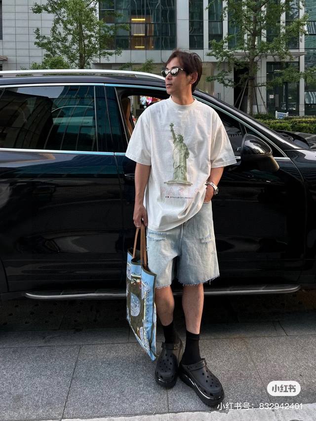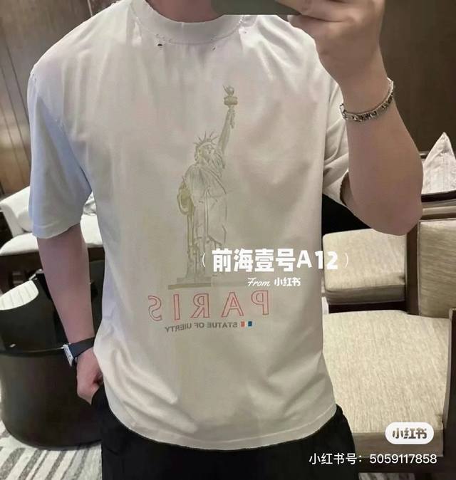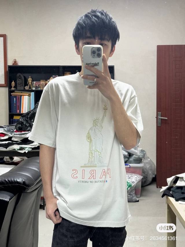 Balenciaga 2025 Ss catwalk style Statue of Liberty washed distressed short-sleeved T-shirt
