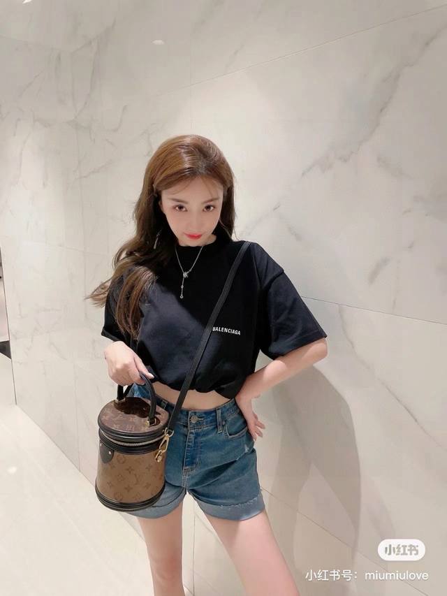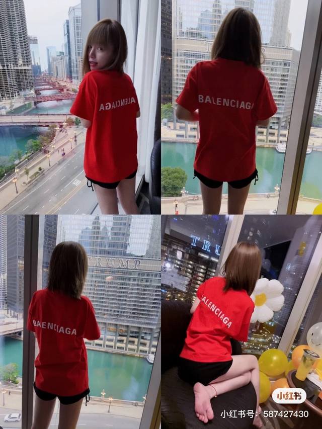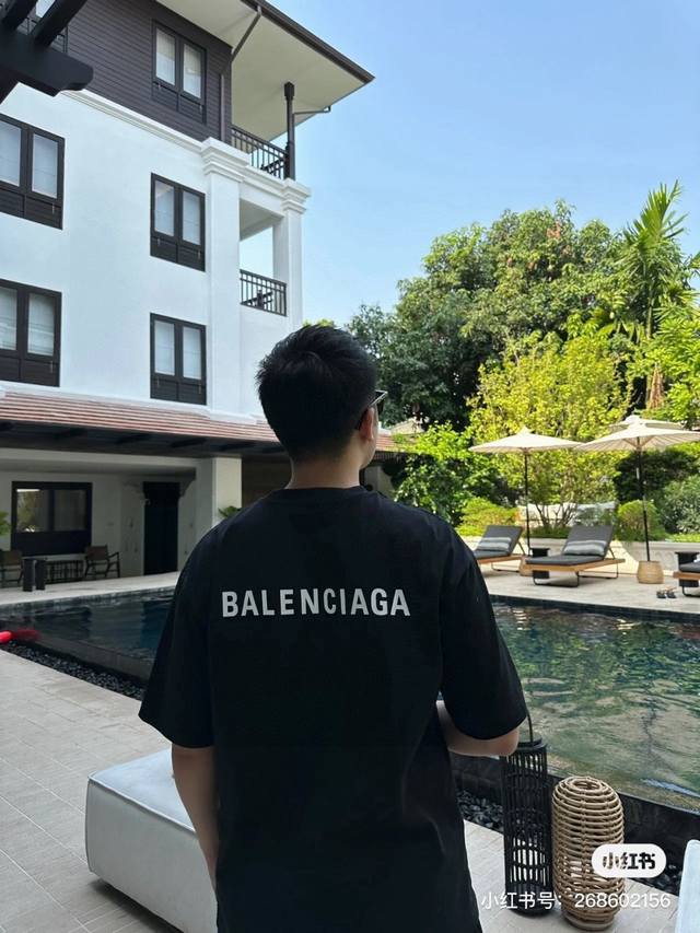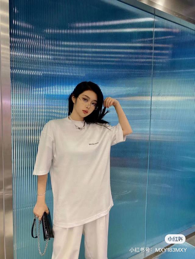Balenciaga 2025 Ss front and back classic letter print short-sleeved T-shirt