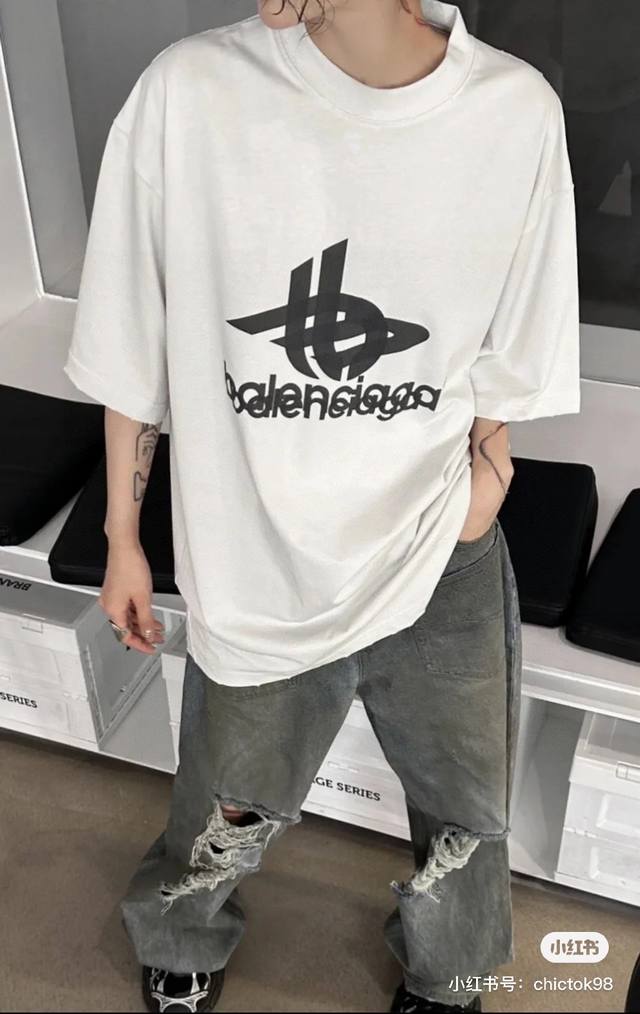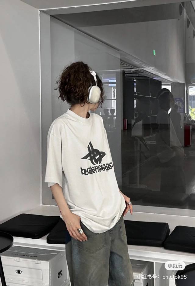 Balenciaga 2025 Ss Phantom Double Logo Classic Pattern Print Short Sleeve T-shir