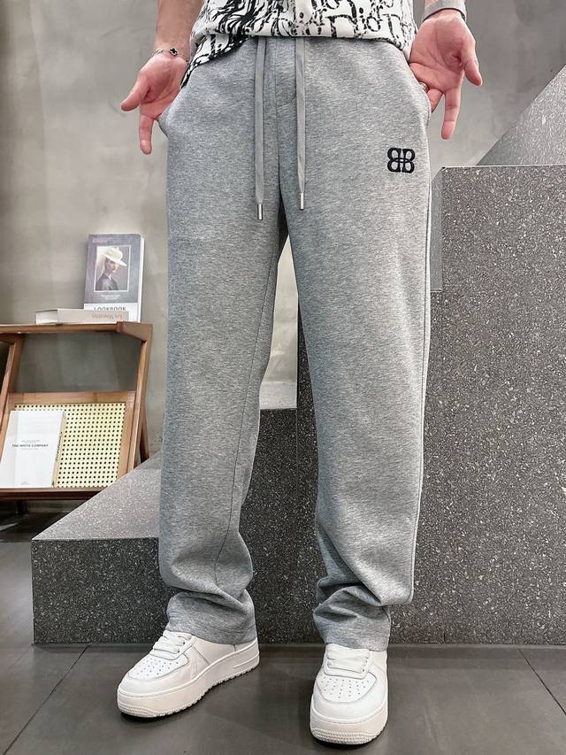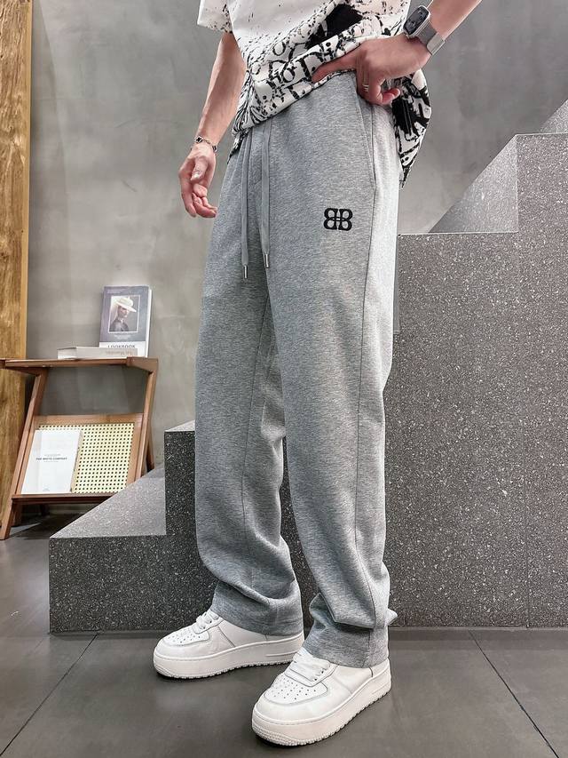 Balenciaga 2025 Summer New Cupro Modal Air Layer Casual Sweatpants. Features embroidered iconic brand logo on the pants, custom-made brand-engraved hardware, showcasing brand style. Crafted from 100% imported fabric, soft, comfortable, and breathable. A fashionable and casual item, versatile and stylish. Colors: Black, Apricot, Gray. Sizes: M-3XL