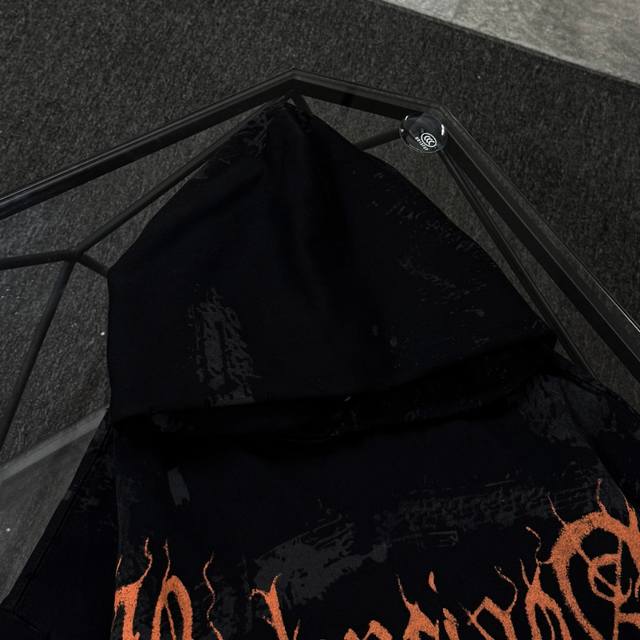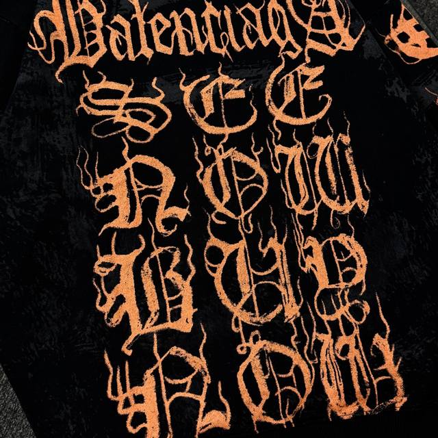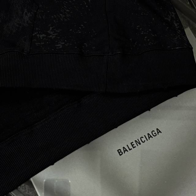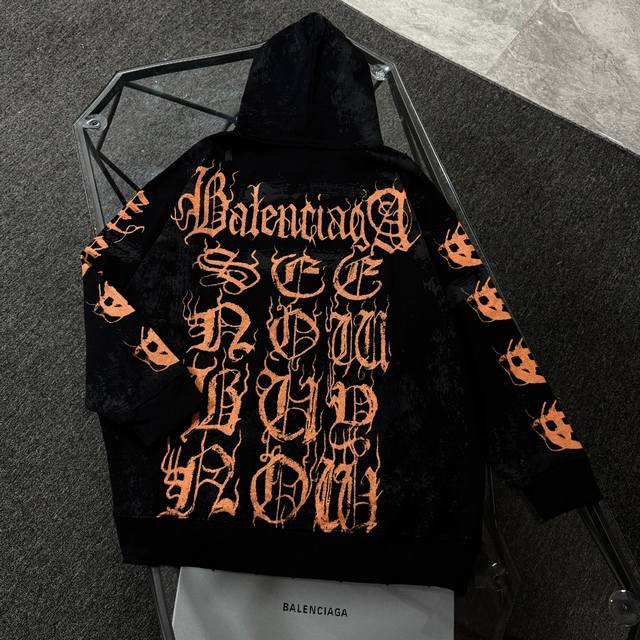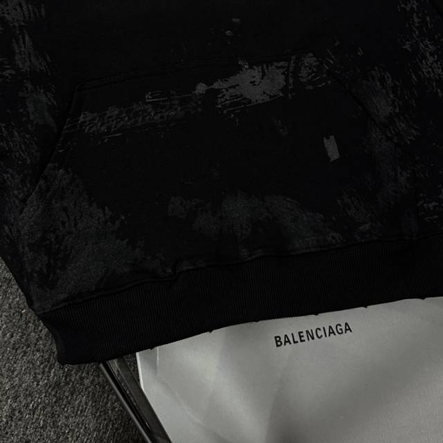 Balenciaga 25 High-Quality Hoodie, Drop-Shoulder Loose Fit, 480g Cotton Fabric, No Deformation or Shrinkage, All Labels Included, Unisex Style, Craftsmanship: Distressed and Ripped, Imported Conoco Digital Direct Printing, Hand-Painted Graffiti, Color: Black, Size: XS-L