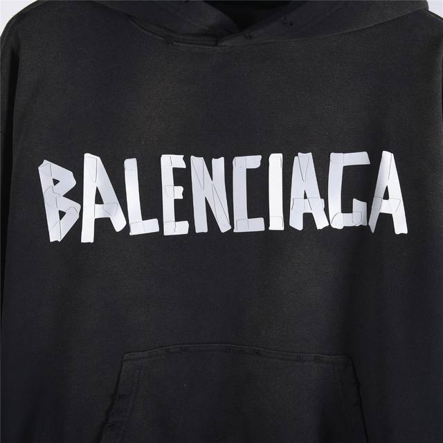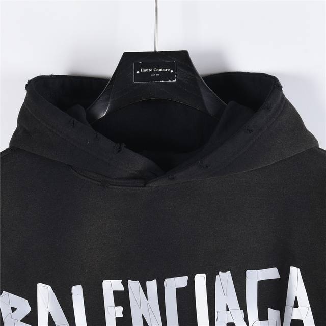 Balenciaga 25Fw 3D Tape Washed Ripped Hooded Sweatshirt