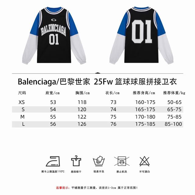 Balenciaga 25Fw Basketball Jersey Patchwork Hoodie Faux 3-Piece Set Embroidered