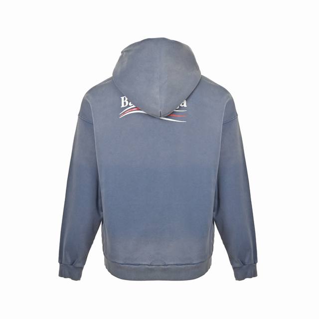 Balenciaga 25Fw Cola Print Distressed Washed Hooded Sweatshirt. Made with custom-dyed terry cotton hoodie fabric, 420g double-ply double-yarn, comfortable to the touch, and crafted with imported knitting needles and combed cotton. Moderate thickness, with a good drape and silhouette, it's incredibly comfortable to wear! Highly forgiving for slightly chubby figures, making you look instantly slimmer! The front chest area features direct-jet printing on environmentally friendly plastisol material using mechanized printing technology. High precision printing, with registration accuracy up to
