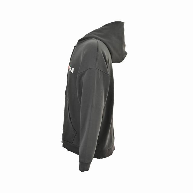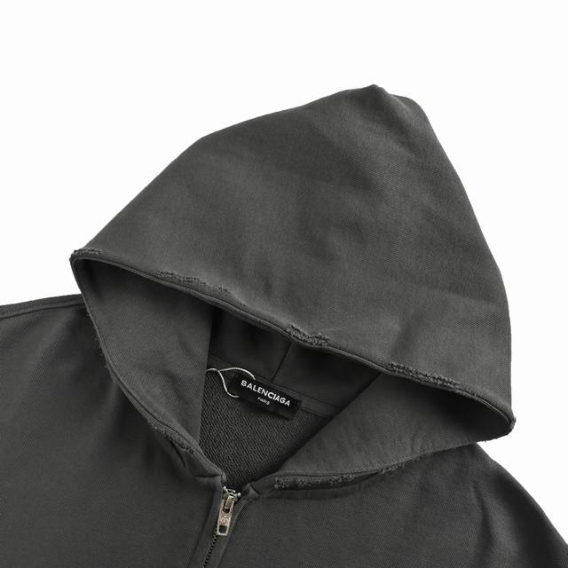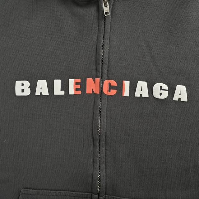 Balenciaga 25Fw Colorful Lettering Foam Print Zippered Hooded Jacket. Made from 480g combed cotton, custom-woven and dyed in Paris. The thread is custom-dyed to minimize color variation. The colorful lettering embroidery features a ripped pattern, ensuring crisp, brick-like embroidery. The garment is distressed and reminiscent of a typical market item. Comparisons are welcome. The silhouette features an OST relaxed, dropped-shoulder fit. Available for both men and women. Colors: Light Blue, Dark Gray. Sizes: S-XL.