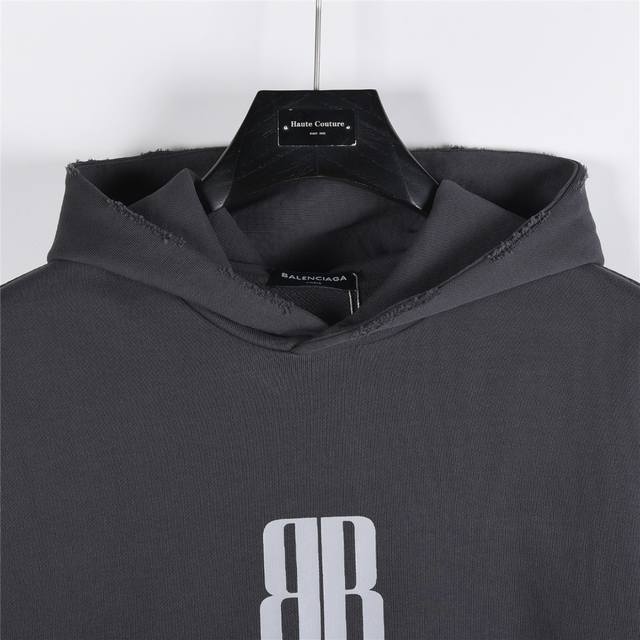 Balenciaga 25Fw Double B Logo Print Ripped Hoodie Ddd Nano Bb Cropped Hoodie Faded Black Hoodie Ddd Fabric: Custom 450g washed terry cotton fabric with excellent drape and stiffness. Extremely high-quality finish with a superb wash. Ddd Kangaroo pocket design at the waist, relaxed fit with dropped shoulders, suitable for both men and women. A must-have premium hoodie. Ddd Ripped details on the hood, cuffs, and hem. Ddd No drawstring hood. Ddd Drop shoulders. Ddd One kangaroo pocket on the front. Ddd Gathered cuffs and waist. Ddd Front adorned with Nano Bb artwork. Ddd Colors: Off-white, Dark gray. Ddd Size: S-XL.