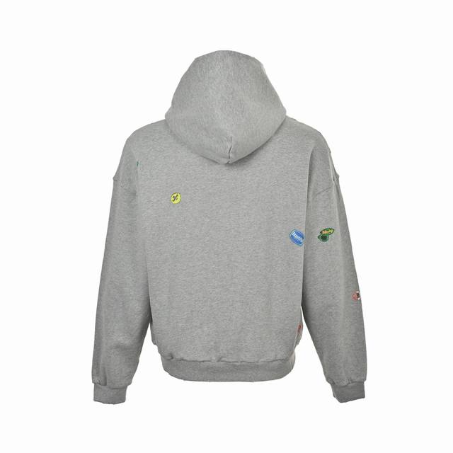 Balenciaga 25Fw Fruit Sticker Print Zip-Up Hooded Jacket. Made of Paris Zp custom-woven and dyed 100% cotton oversized sweatshirt. Weight: weight in grams], clean fabric surface, clear weave, soft and comfortable. Ribbing is custom-dyed for color consistency. Printed pattern uses environmentally friendly imported ink, computer inkjet printing, clear pattern, no rough edges, strong three-dimensional effect. Finished garment washed with distressed and worn finish. All colors are synchronized with brick stores, custom-woven and dyed, colorfast. Significantly different from market stock. Fit: Os loose drop-shoulder style. Unisex. Colors: Heather Gray, Pink. Size: XS-L.
