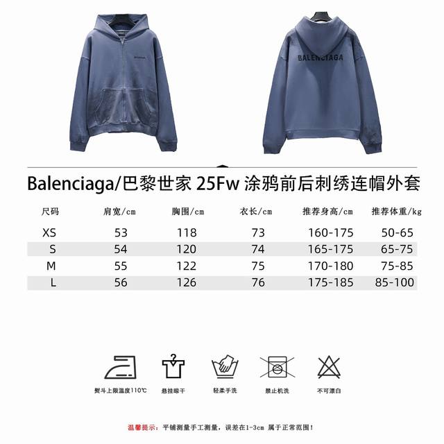 Balenciaga 25Fw Graffiti Embroidered Hooded Jacket (Ddd) Made with custom-dyed terry cotton sweatshirt fabric, double-strand double-yarn, comfortable to the touch, and crafted with imported knitting needles and combed cotton. Moderate thickness, with a good drape and structured silhouette, it's incredibly comfortable to wear! Highly forgiving for slightly chubby figures, making you look instantly slimmer! (Ddd) The front and back embroidery features classic Parisian lettering. (Ddd) Graffiti elements are added to the garment, greatly enhancing its fun and unique visual effect. (Ddd) The loose, gathered hem features double-layered fabric for a neat and refined finish. (Ddd) Color: Graffiti Blue Size: Xs-SML (Ddd)