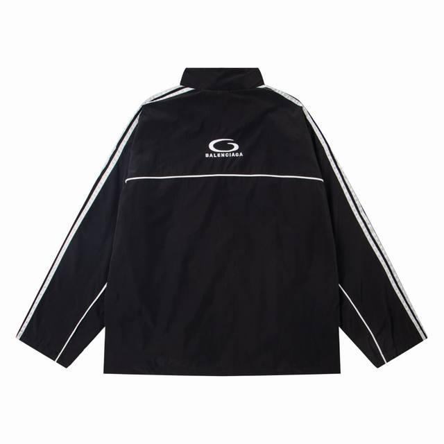 Large Tracksuit Jacket in Black 2025 Fall/Winter New Arrival. The five-stripe Loop Sports Icon embroidered casual sports jacket/windbreaker features exquisite Loop Sports Icon embroidery on the front and back, showcasing the brand's charm. It exudes youthful and sporty style. Wearing this outfit, you'll be the most stylish person on the street, fully displaying your youthful spirit. Don't hesitate, embrace this youthful energy! Unisex!