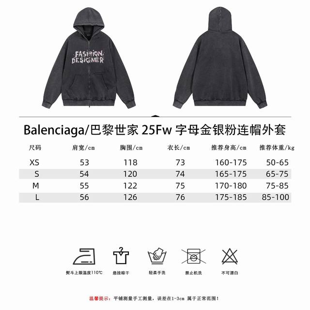 Balenciaga 25Fw Letter Gold and Silver Powder Hooded Jacket