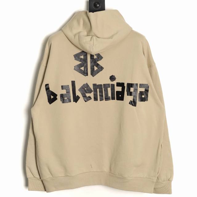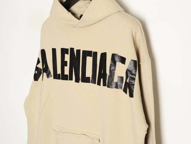 Balenciaga 25Fw Masking Tape Hoodie Ddd Exclusive custom-woven heavyweight fish scale terry fabric with fleece treatment, oatmeal color, custom dyed and matched with ribbed front and back panels, thick oval machine screen printing, ready-to-wear with washed and sanded details, genuine pocket design inside Ddd Sizes: Xs-L DDD